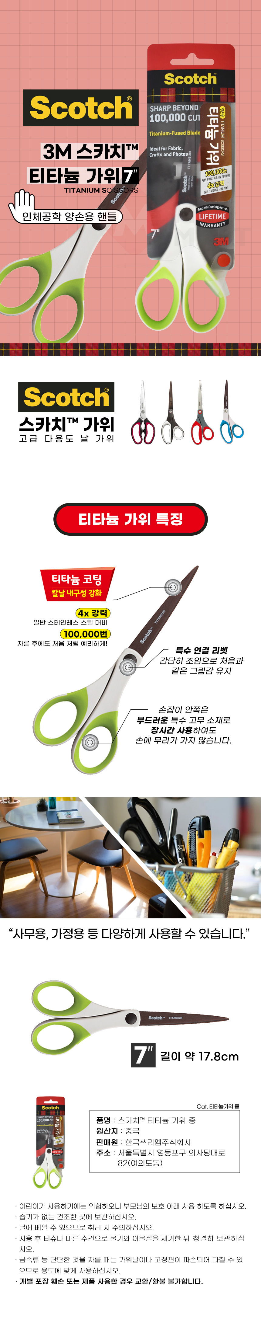 3M 스카치 티타늄 가위 7인치 중 양손용