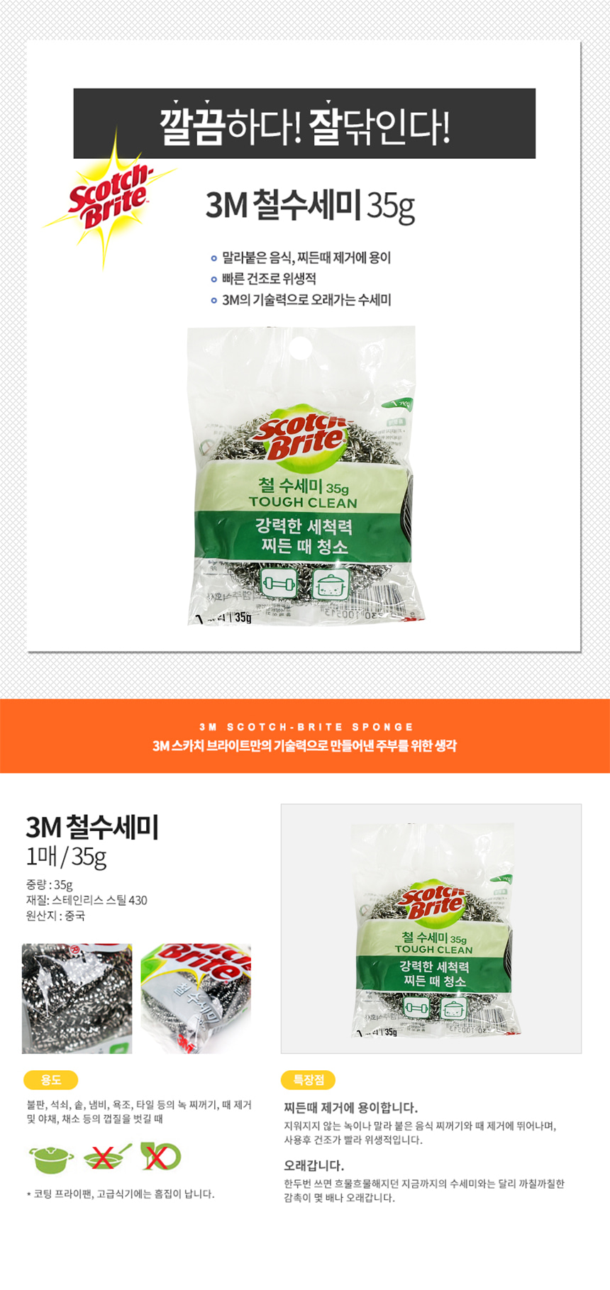 3M 스카치브라이트 철 수세미 35g 1개입 MSBL35