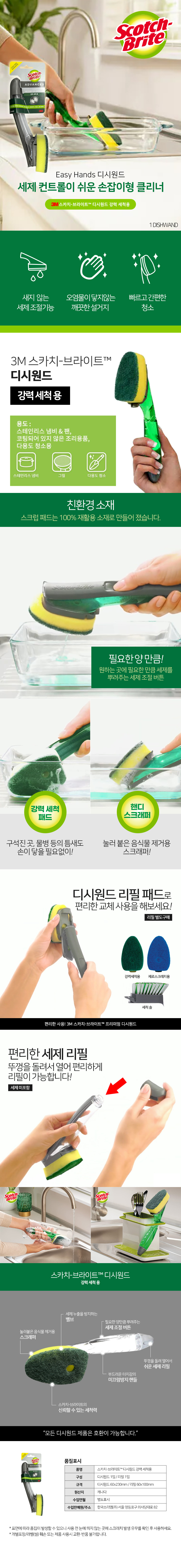 3M 스카치브라이트 디시원드 손잡이 수세미 강력세척용 1입 651U-4 자동 세제 주방 청소 설거지 스텐