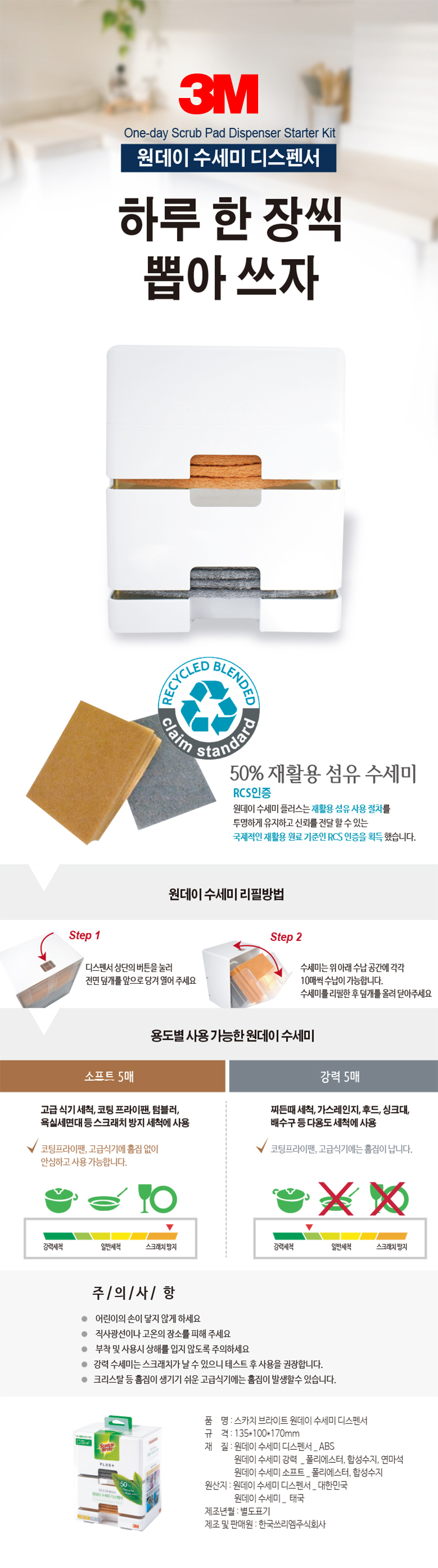 3M 스카치브라이트 원데이 수세미 디스펜서