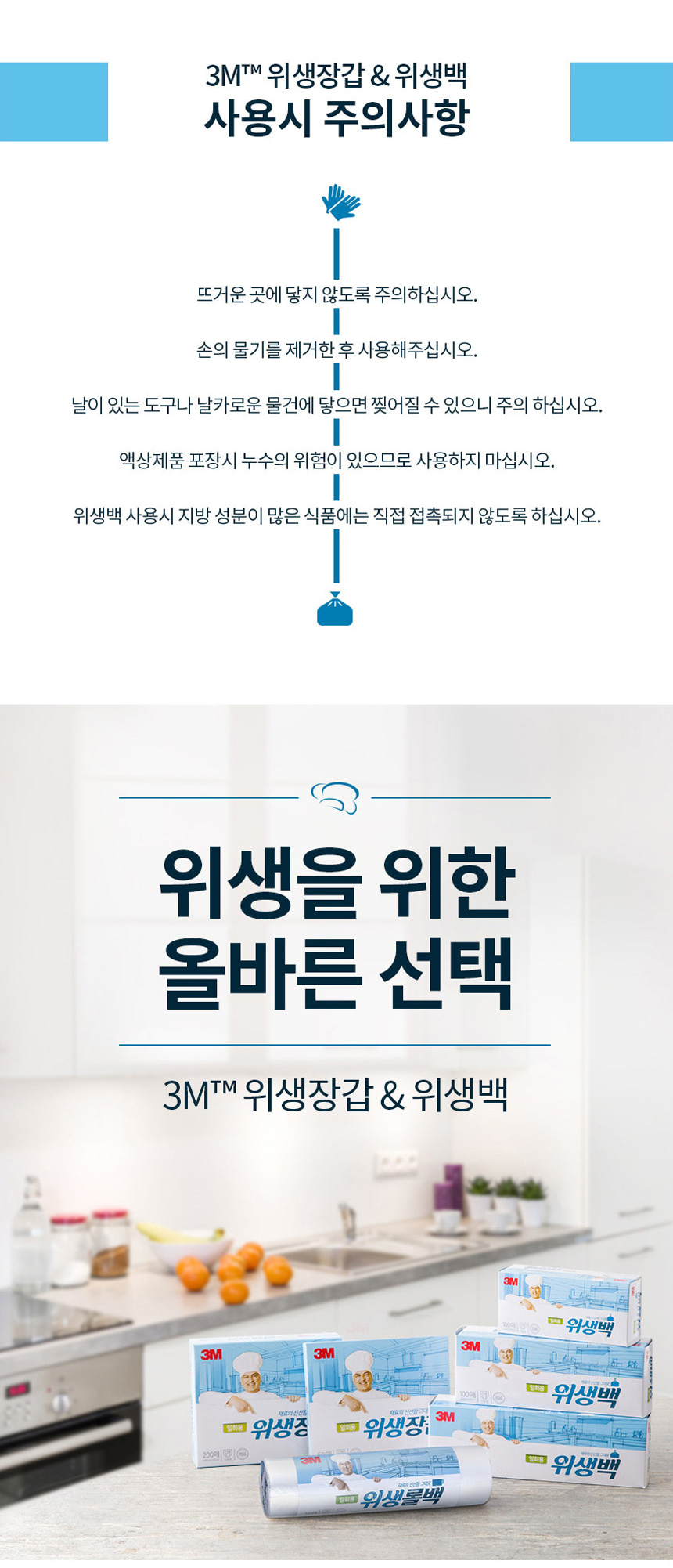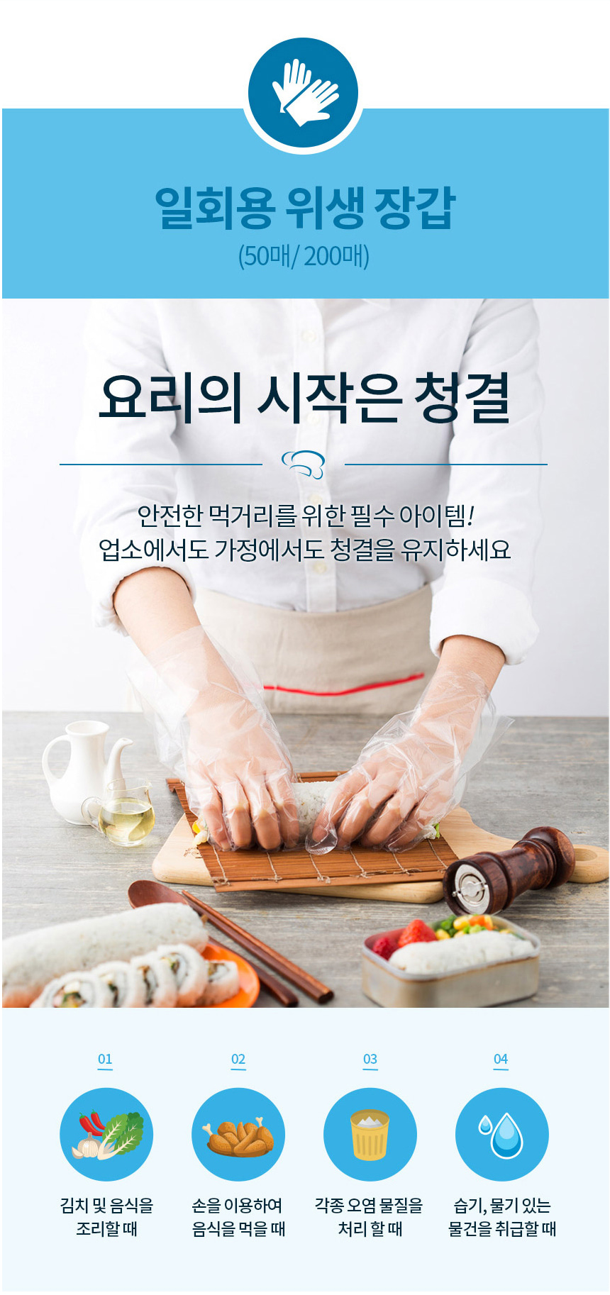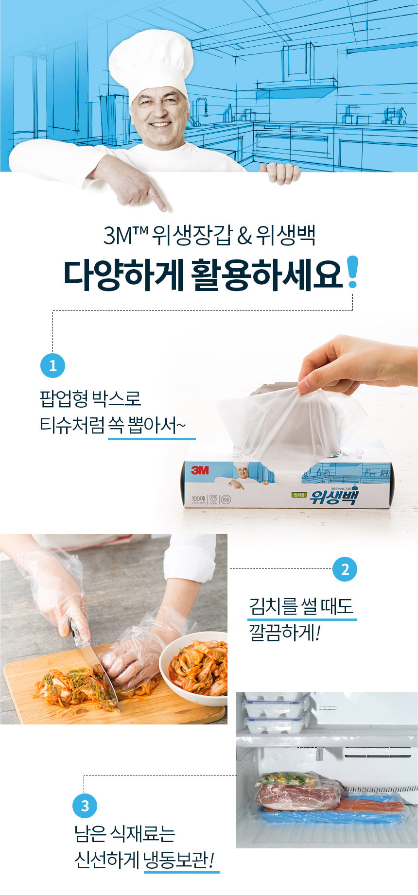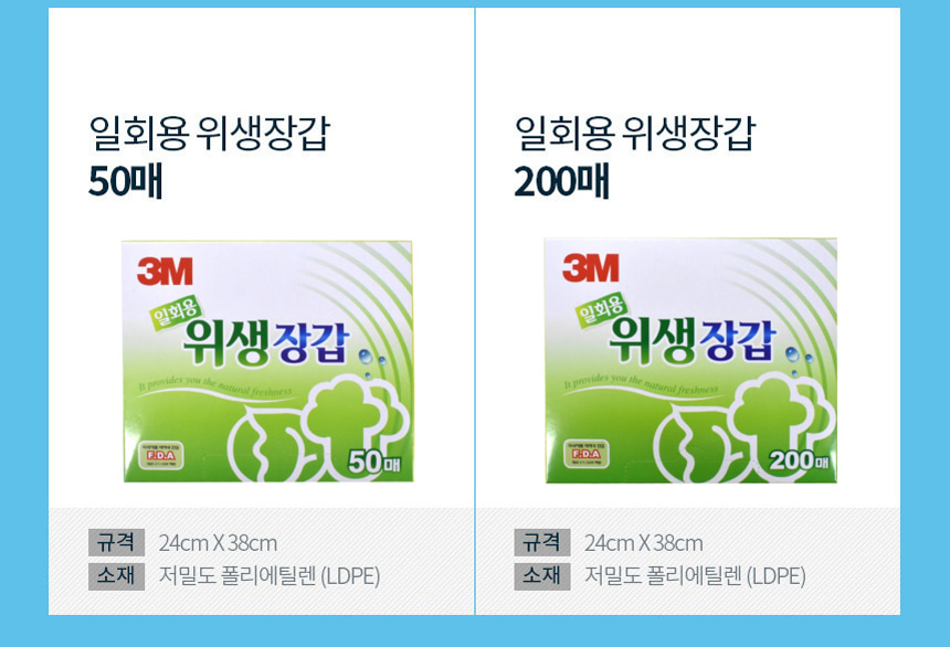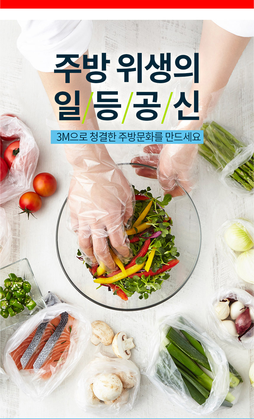 3M 일회용 위생 비닐 장갑 200매 주방 요리 조리 식품용