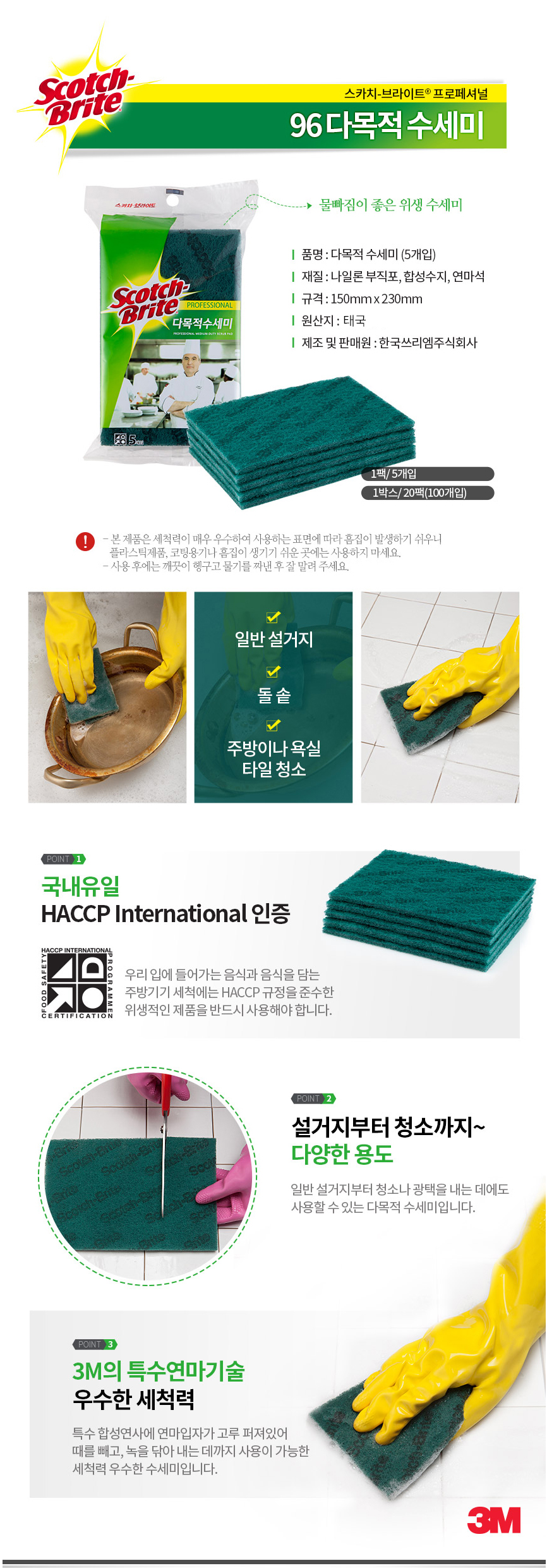 3M 스카치브라이트 96 다목적 수세미 5입 S/B PRO 96 주방 설거지 청소