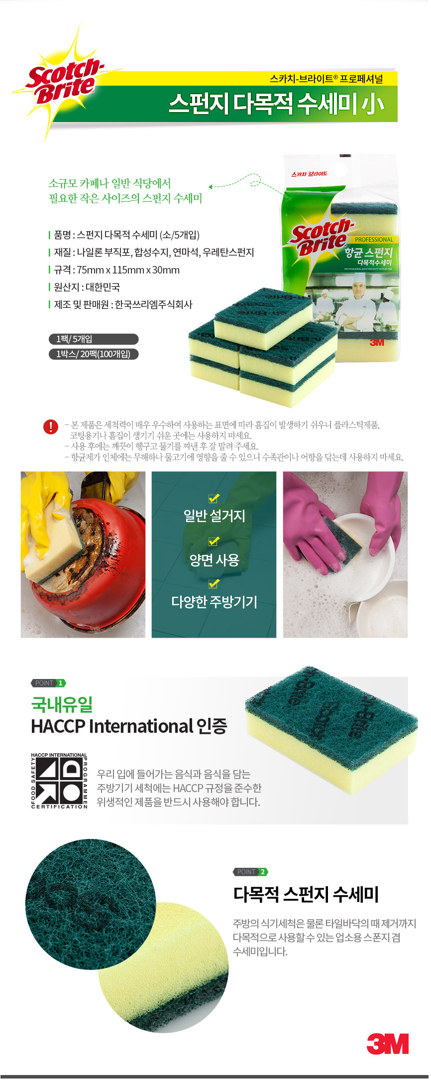 3M 스카치브라이트 스펀지 다목적 수세미 소형 5입 SL865 세척 주방 설거지 청소