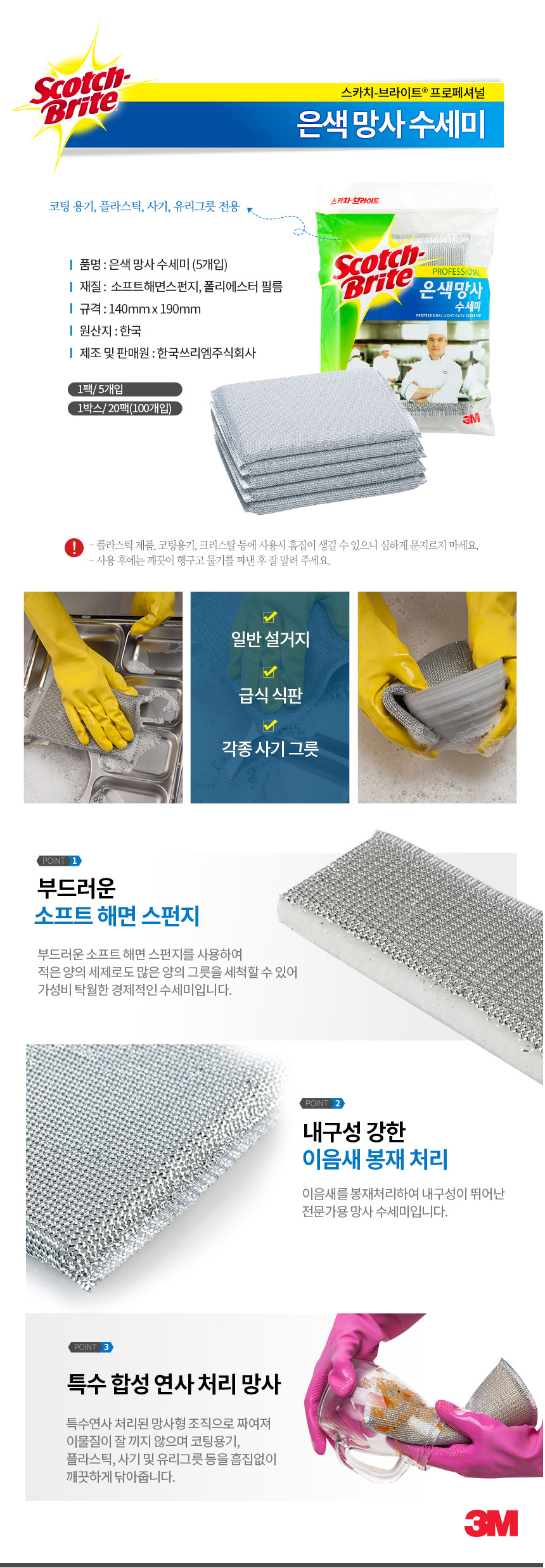 3M 스카치브라이트 은색 망사 수세미 5입 NET-5
