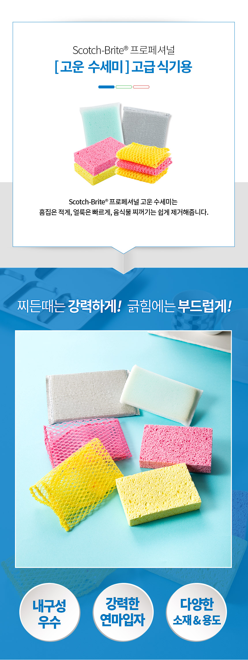 3M 스카치브라이트 스펀지 망사 수세미 5입 옥색 NET-1