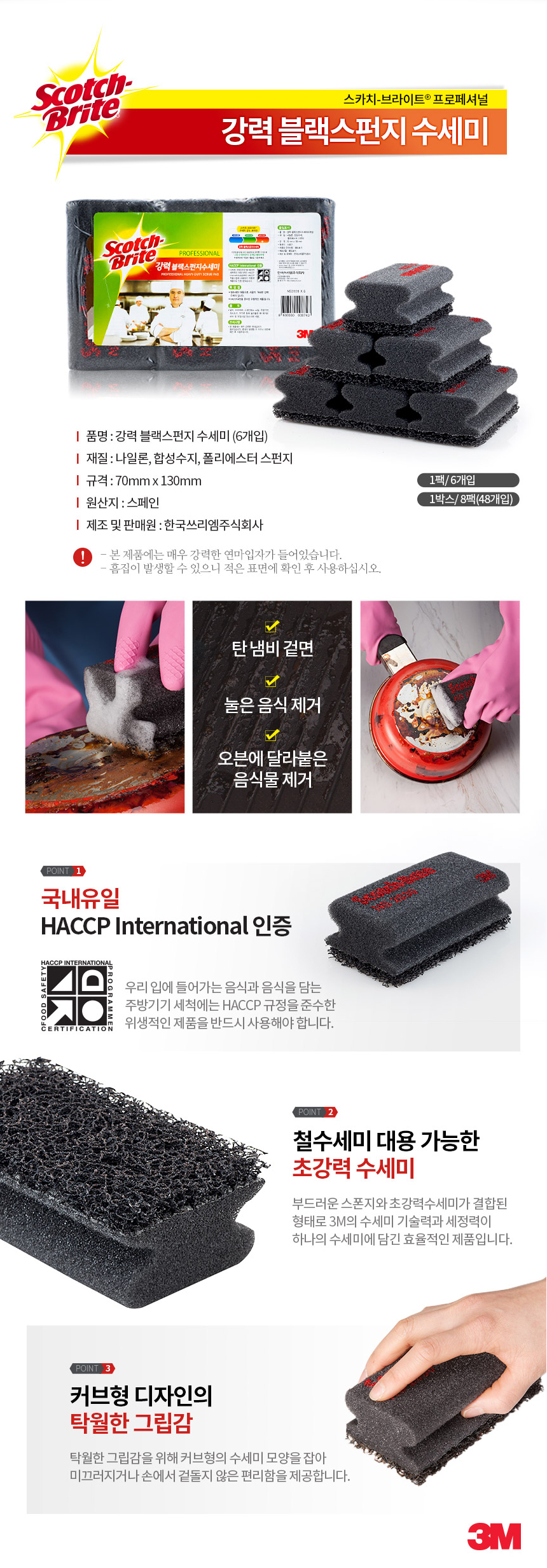 3M 스카치브라이트 강력 블랙 스펀지 수세미 6입 NS2030