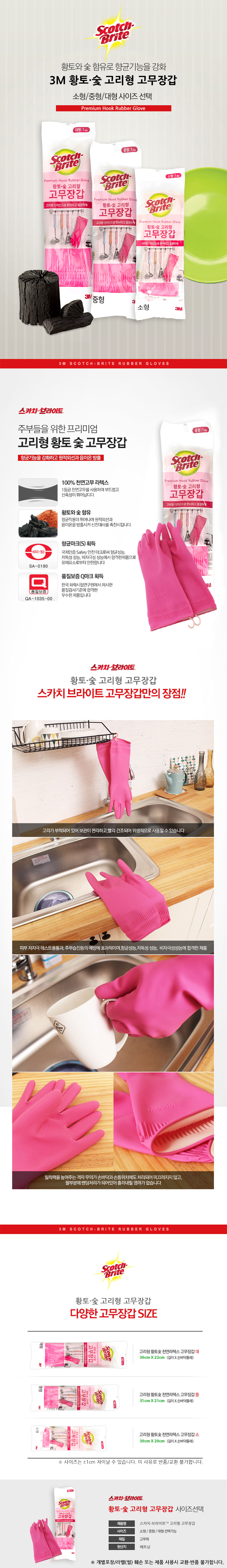 3M 스카치브라이트 황토 숯 고리형 고무 장갑 중형 설거지 주방 다용도 청소