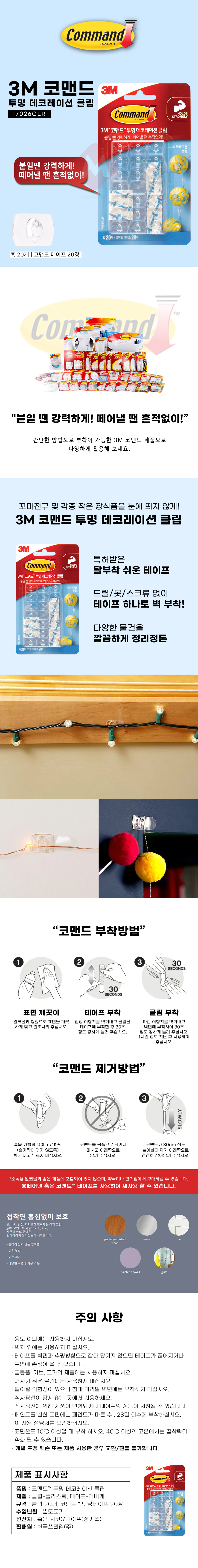 3M 코맨드 투명 데코레이션 클립 17026CLR 미니 후크 벽 걸이 고리 작은 장식품