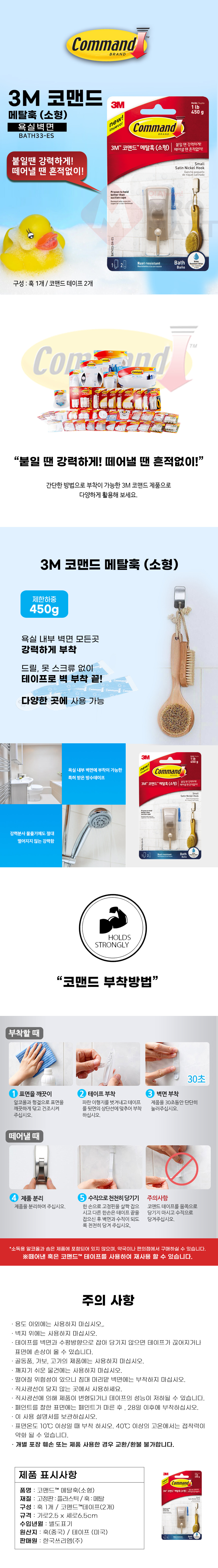 3M BATH33-SN 코맨드 메탈 훅 소형 부착형 다용도 걸이 후크 욕실 용품