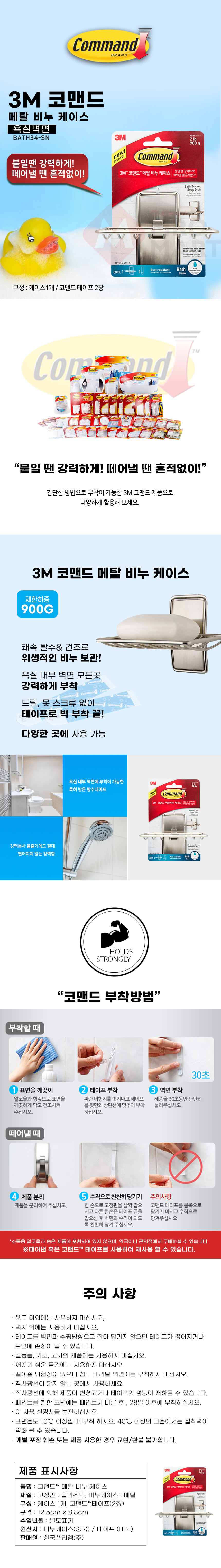 3M BATH34-SN 코맨드 메탈 비누 케이스 받침대 거치대 부착형 욕실용품