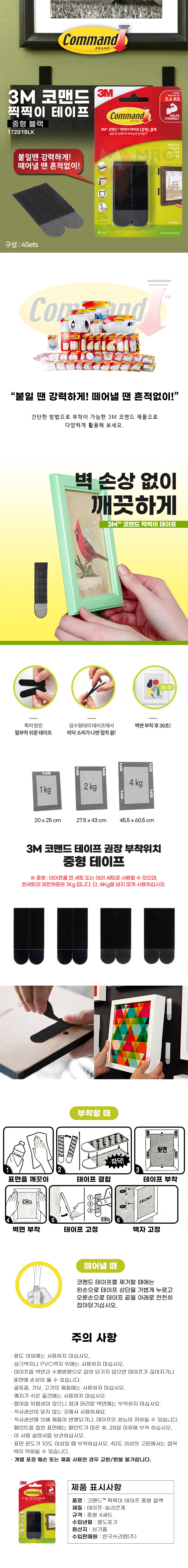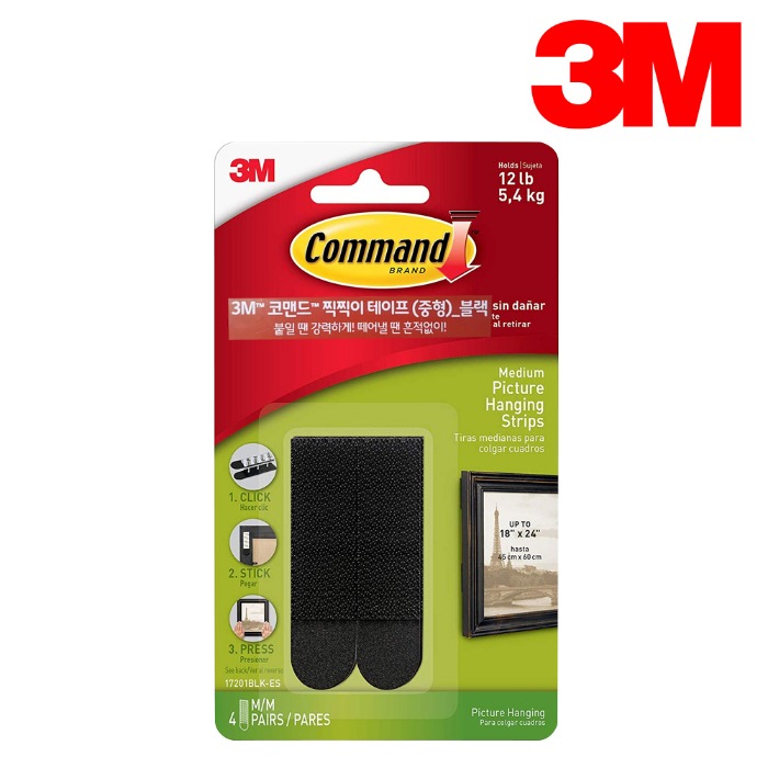 3M 코맨드 찍찍이 테이프 중형 블랙 탈부착 액자 걸이 못없이 17201BLK