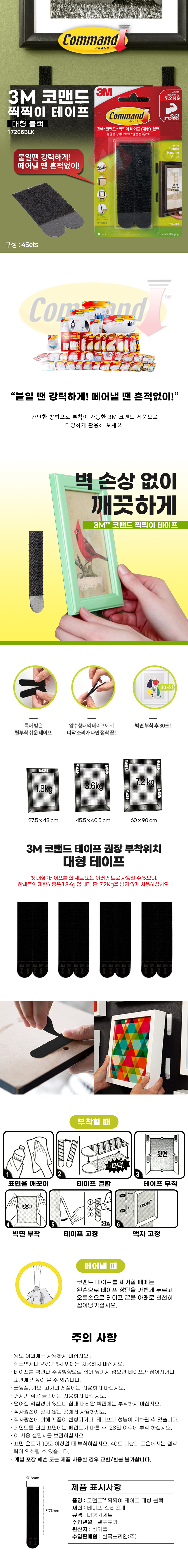 3M 코맨드 찍찍이 테이프 대형 블랙 탈부착 액자 걸이 못없이 17206BLK
