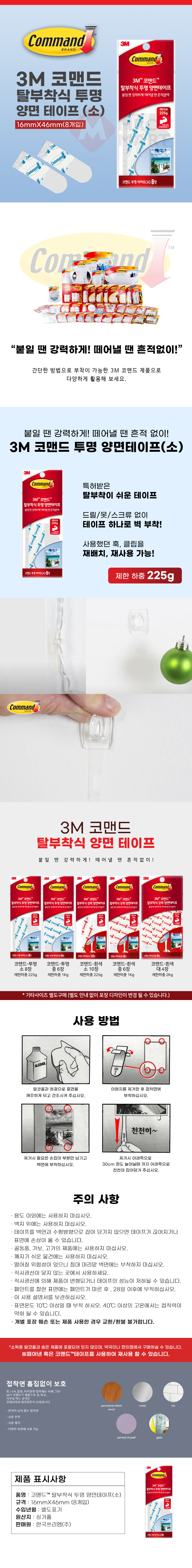 3M 코맨드 탈부착식 투명 양면 테이프 소 8장 리필 훅 재사용 재부착