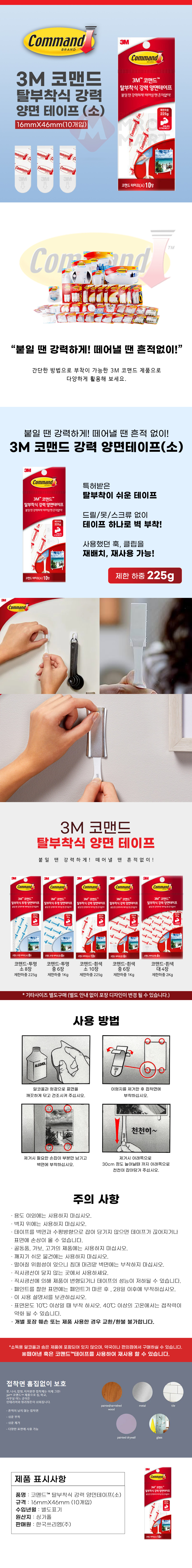 3M 코맨드 탈부착식 강력 양면 테이프 소 10장 리필 훅 재사용 재부착