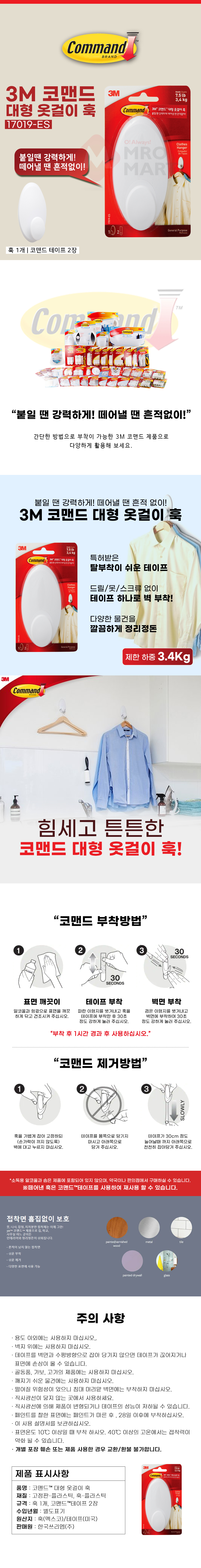 3M 코맨드 대형 옷걸이 훅 17019-ES