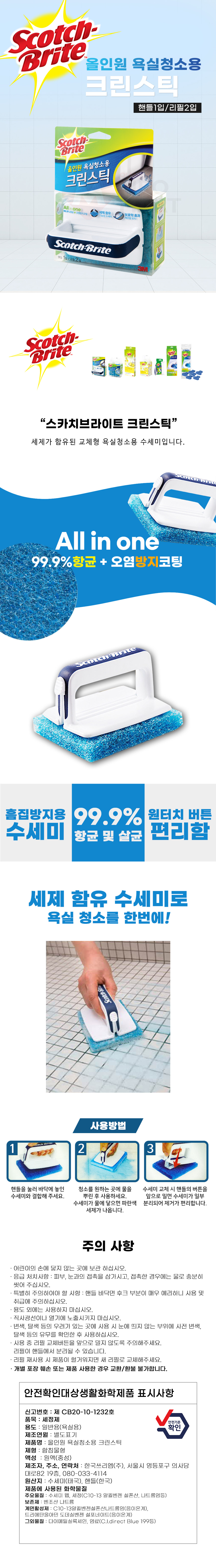 3M 스카치브라이트 올인원 욕실청소용 크린스틱 1H2R