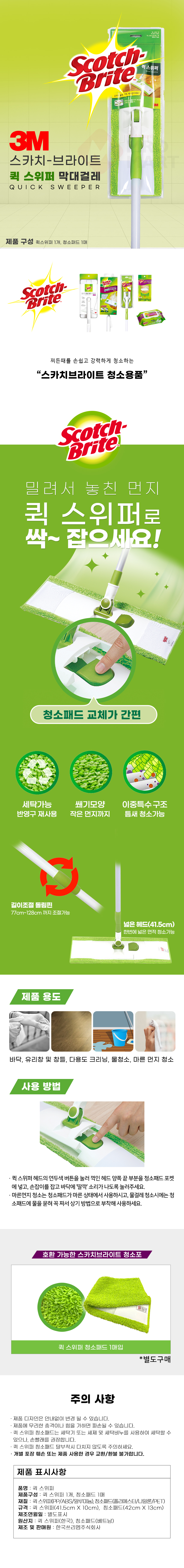 3M 스카치브라이트 퀵스위퍼 청소 막대걸레 밀대