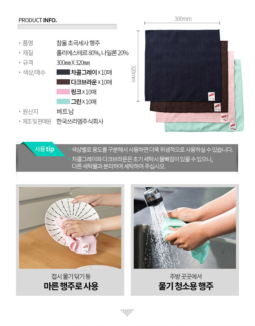 3M 스카치브라이트 참올 초극세사 프리미엄 행주 10매입