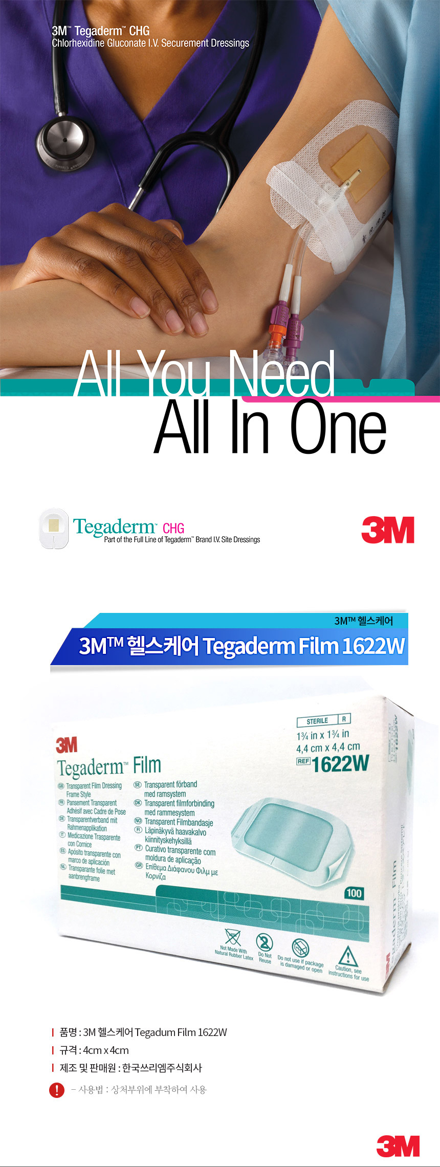 3M 테가덤 멸균드레싱밴드 의료용밴드 1622W 100EA