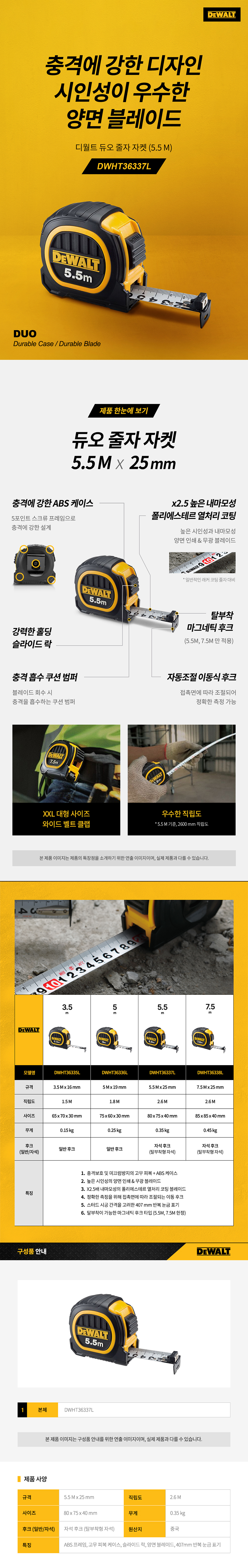 디월트 듀오 줄자 자켓 5.5M DWHT36337L 측정 공구 수공구