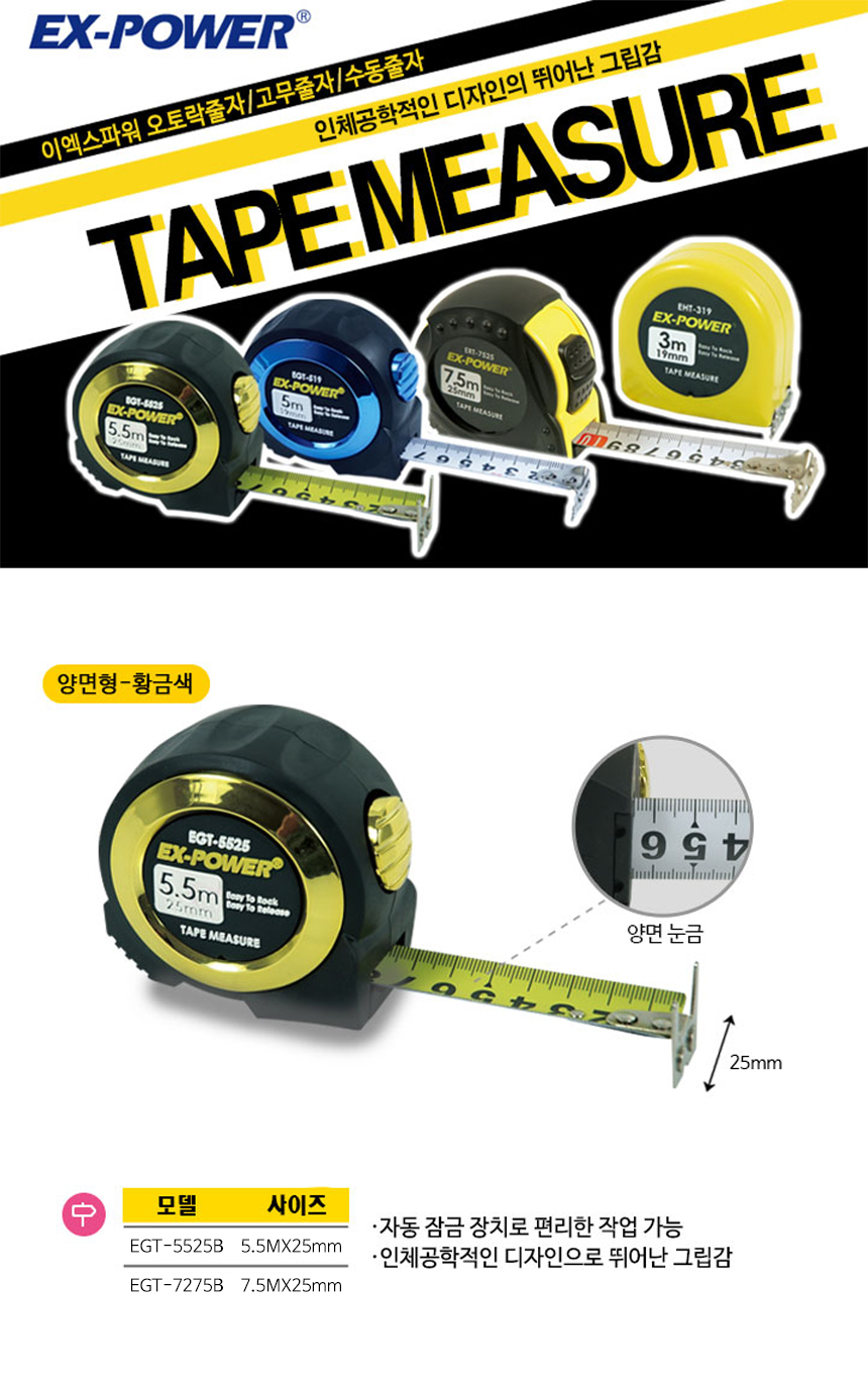 이엑스파워 오토락 줄자 양면 5.5M EGT-5525B 측정 수공구