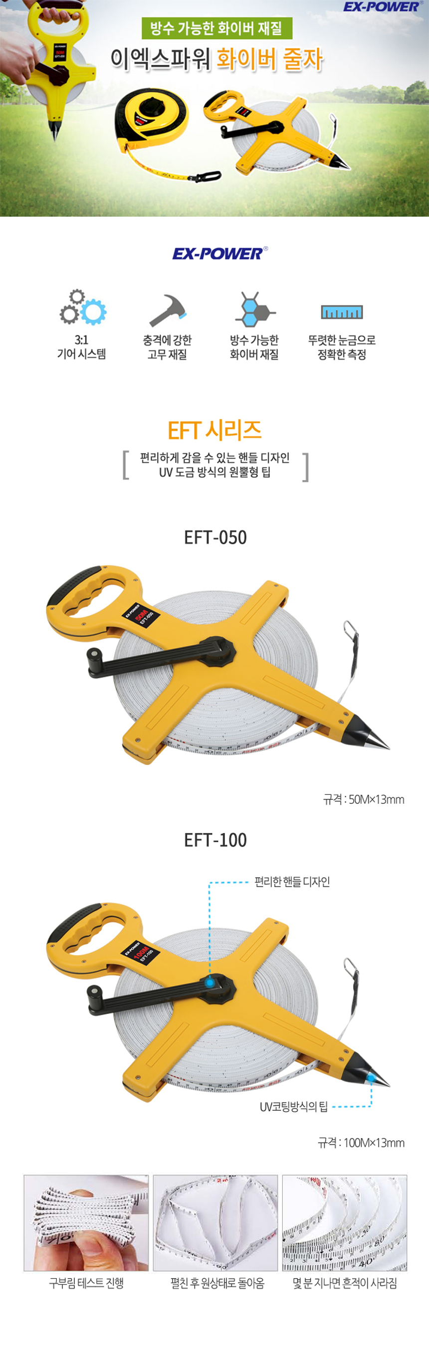 이엑스파워 EFT 화이버 줄자 50M EFT-050 측정 수공구