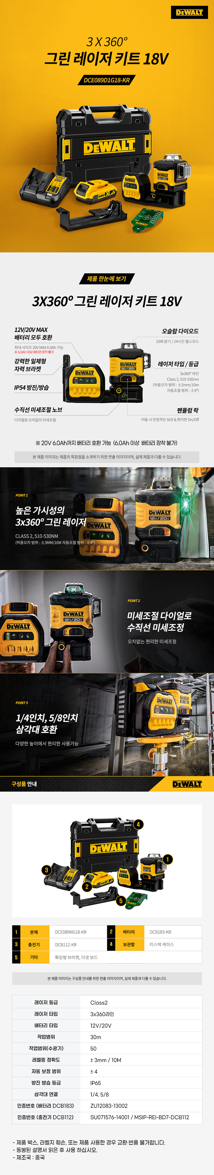 디월트 MAX 12V 20V 3x360° 그린 레이저 레벨기 키트 DCE089D1G18