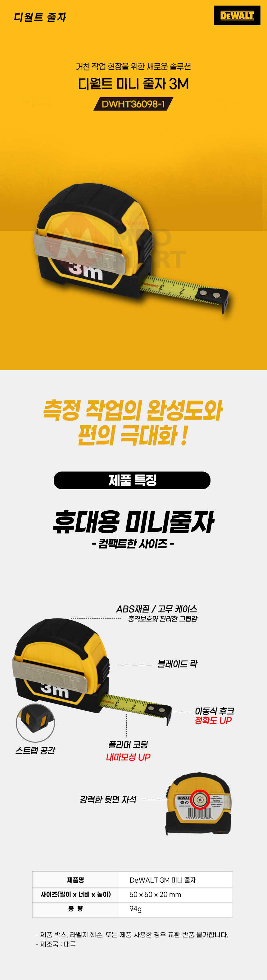 디월트 휴대용 미니 자동 줄자 3M DWHT36098-1