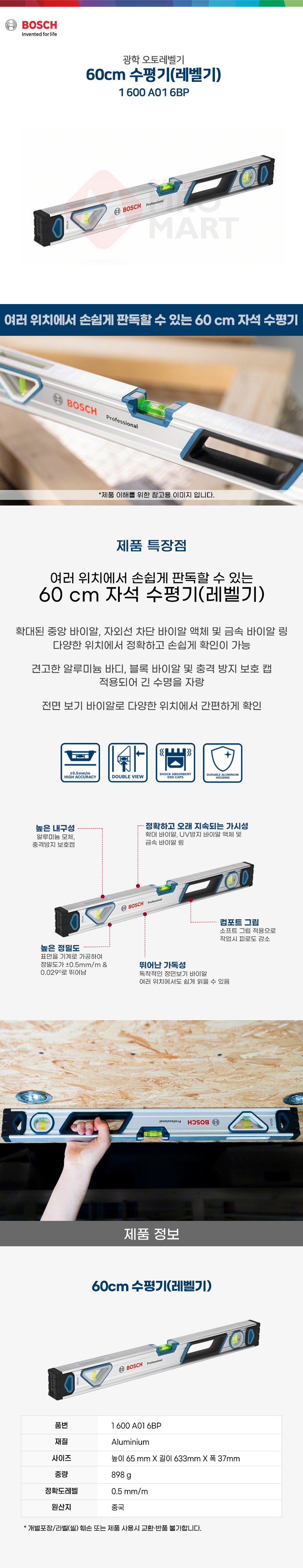 보쉬 60cm 수평기 레벨기 수평계 수평대 측정 바이알 1600A016BP