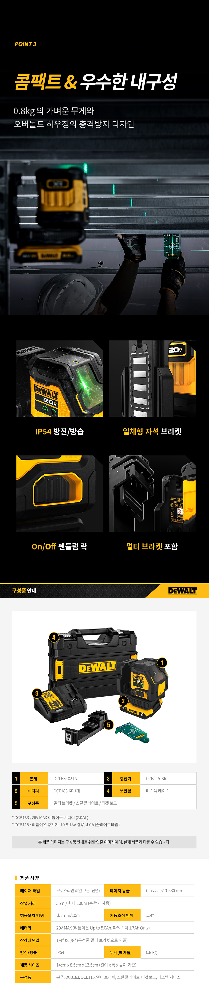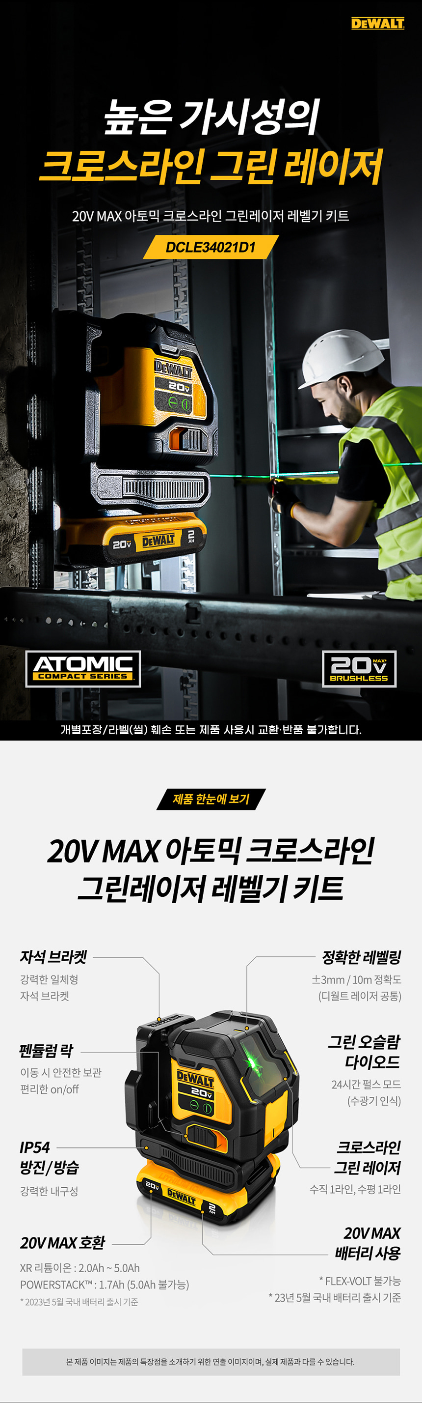 디월트 DCLE34021D1 20V MAX 아토믹 크로스라인 그린레이저 레벨기 키트 수직 수평 측정기
