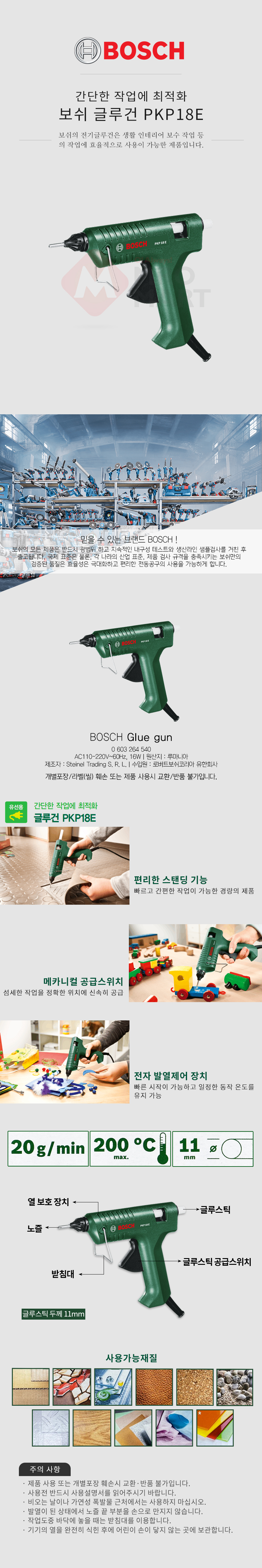 보쉬 PKP18E 글루건 0603264540 핫멜트 접착제 본드총 리폼 공예