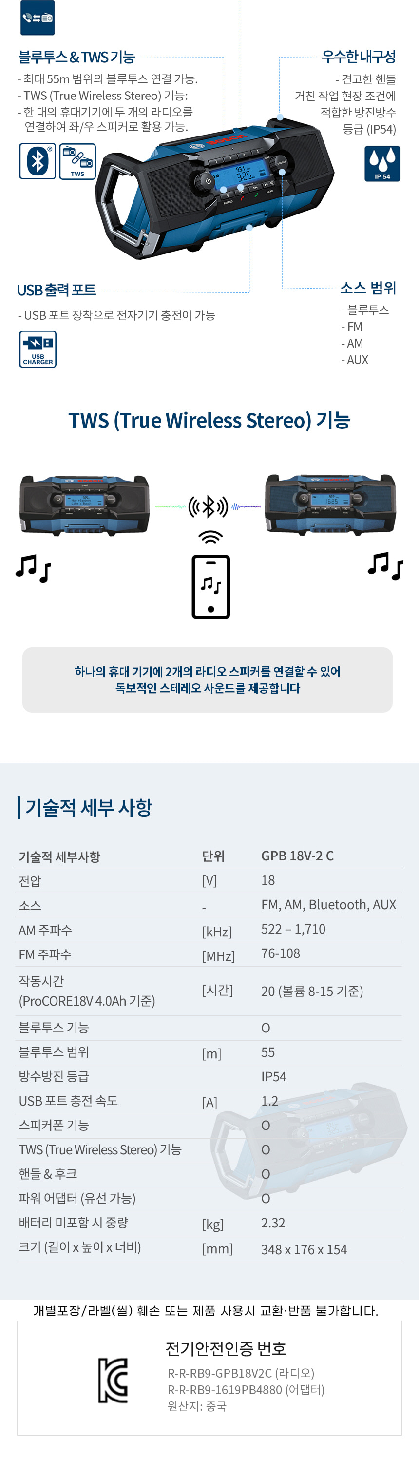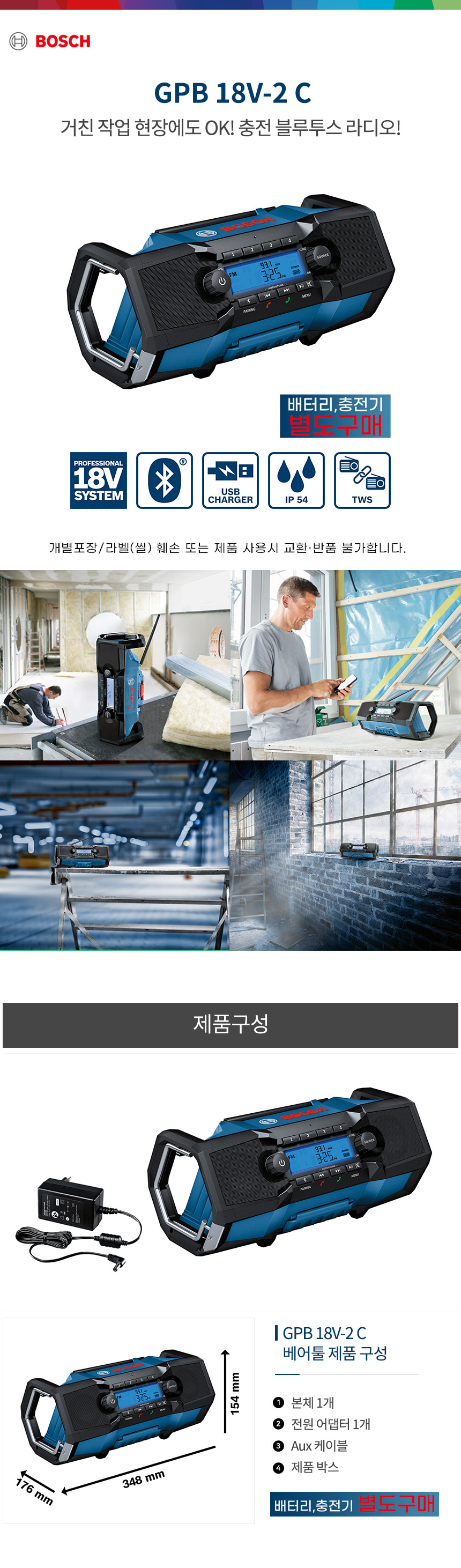 보쉬 GPB 18V-2 C 충전 라디오 베어툴 06014A3050