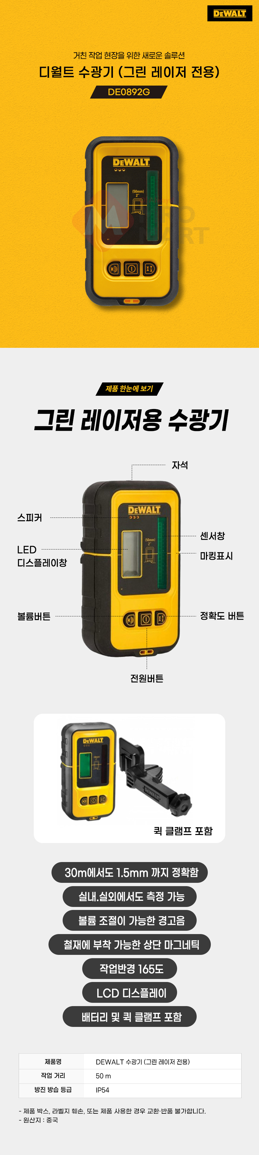 디월트 DE0892G 그린 레이저 전용 수광기 레벨기 측정공구 DCE089D1G용