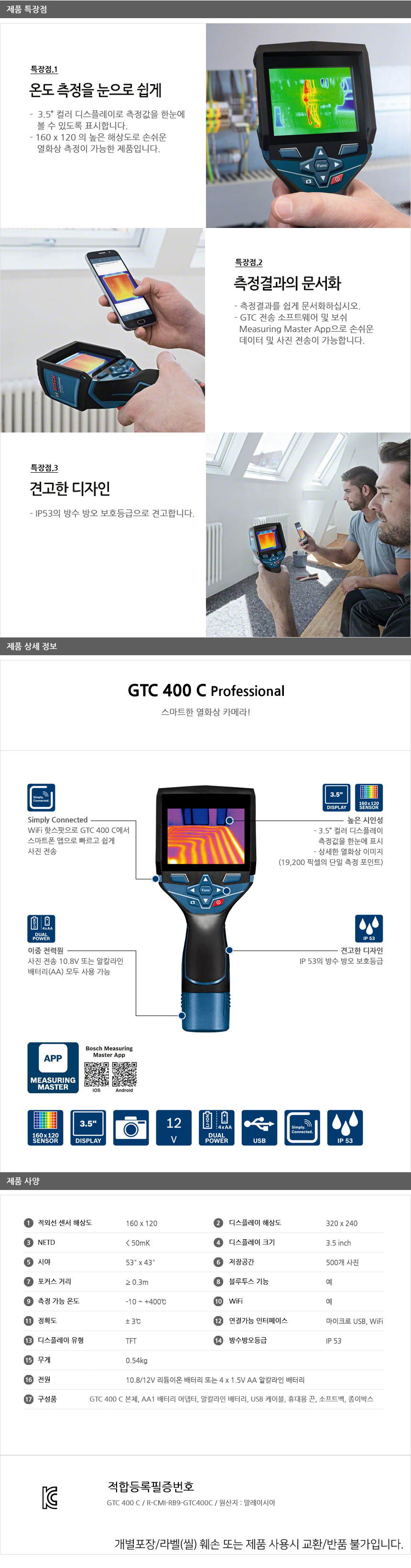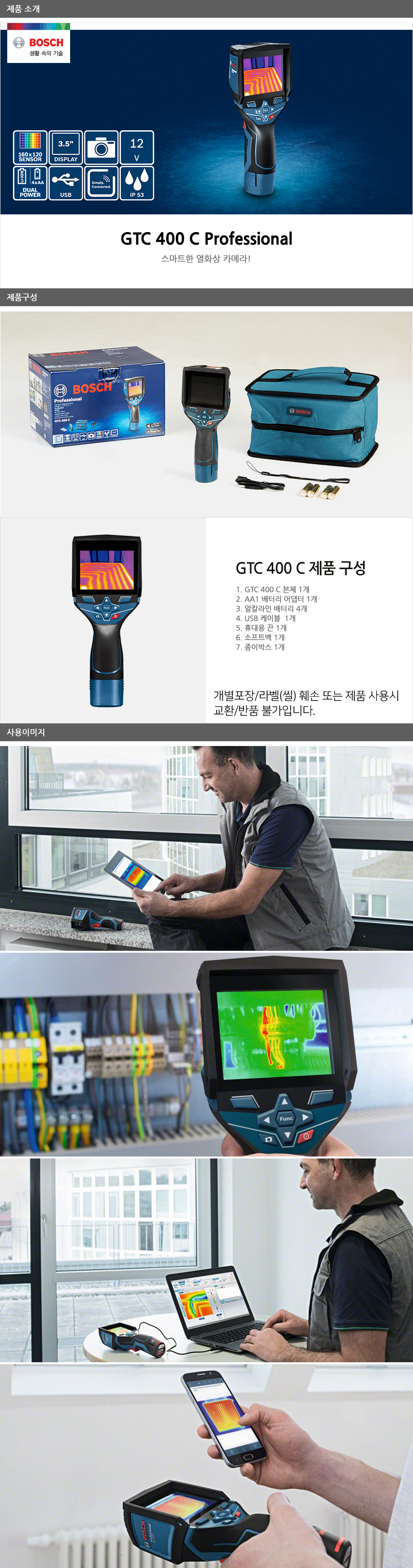 보쉬 GTC400C 열화상 카메라 베어툴 0601083150 열감지 온도 측정 AA건전지 포함