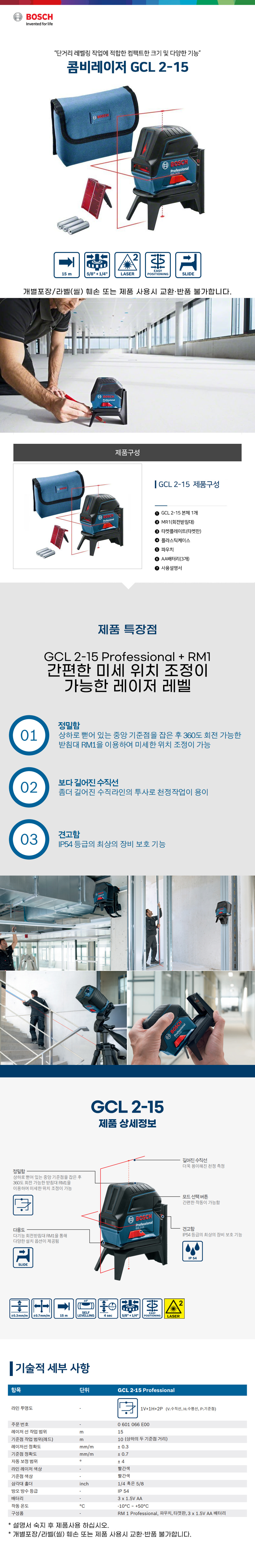 보쉬 GCL2-15 콤비 레이저 레벨기 0601066E00 수평기 수평계 수직 수평