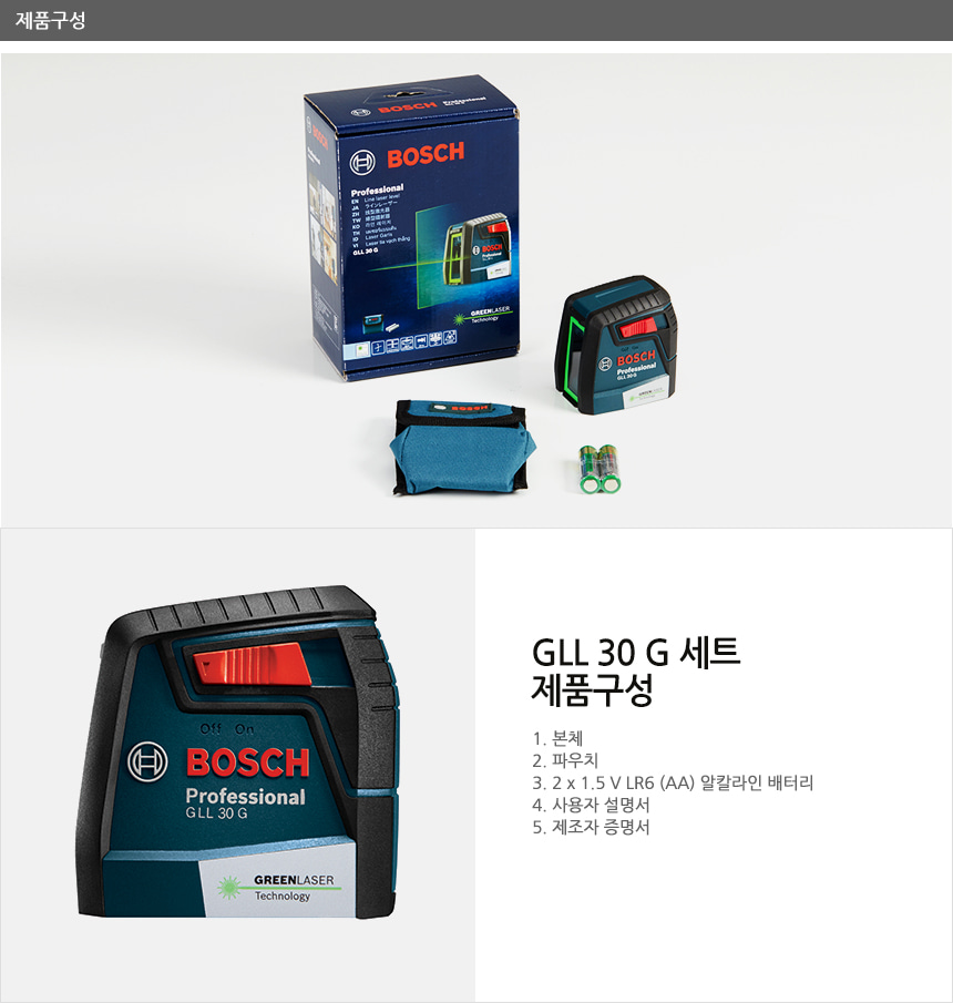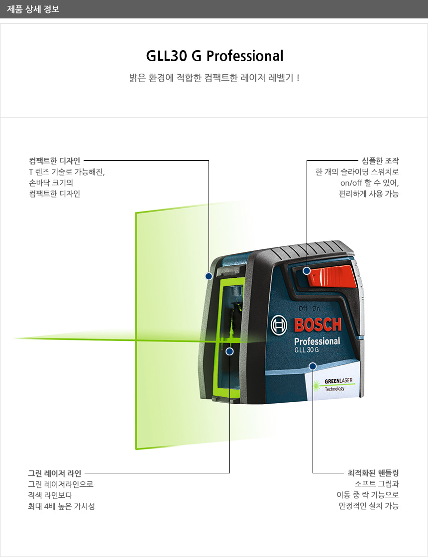 보쉬 크로스 라인 레이저 레벨기 GLL30G 수평계 수평기 수직 수평 측정 0601063V80