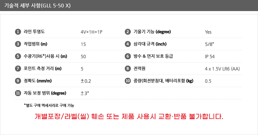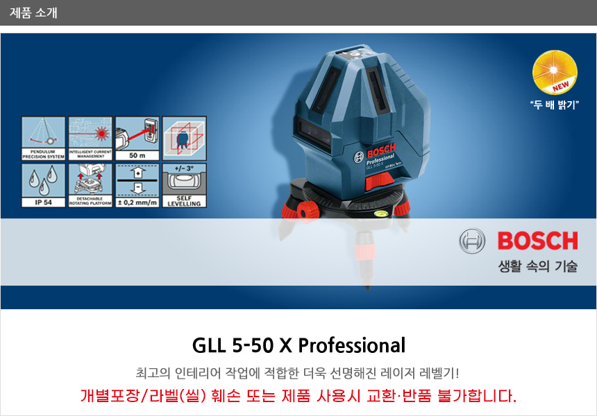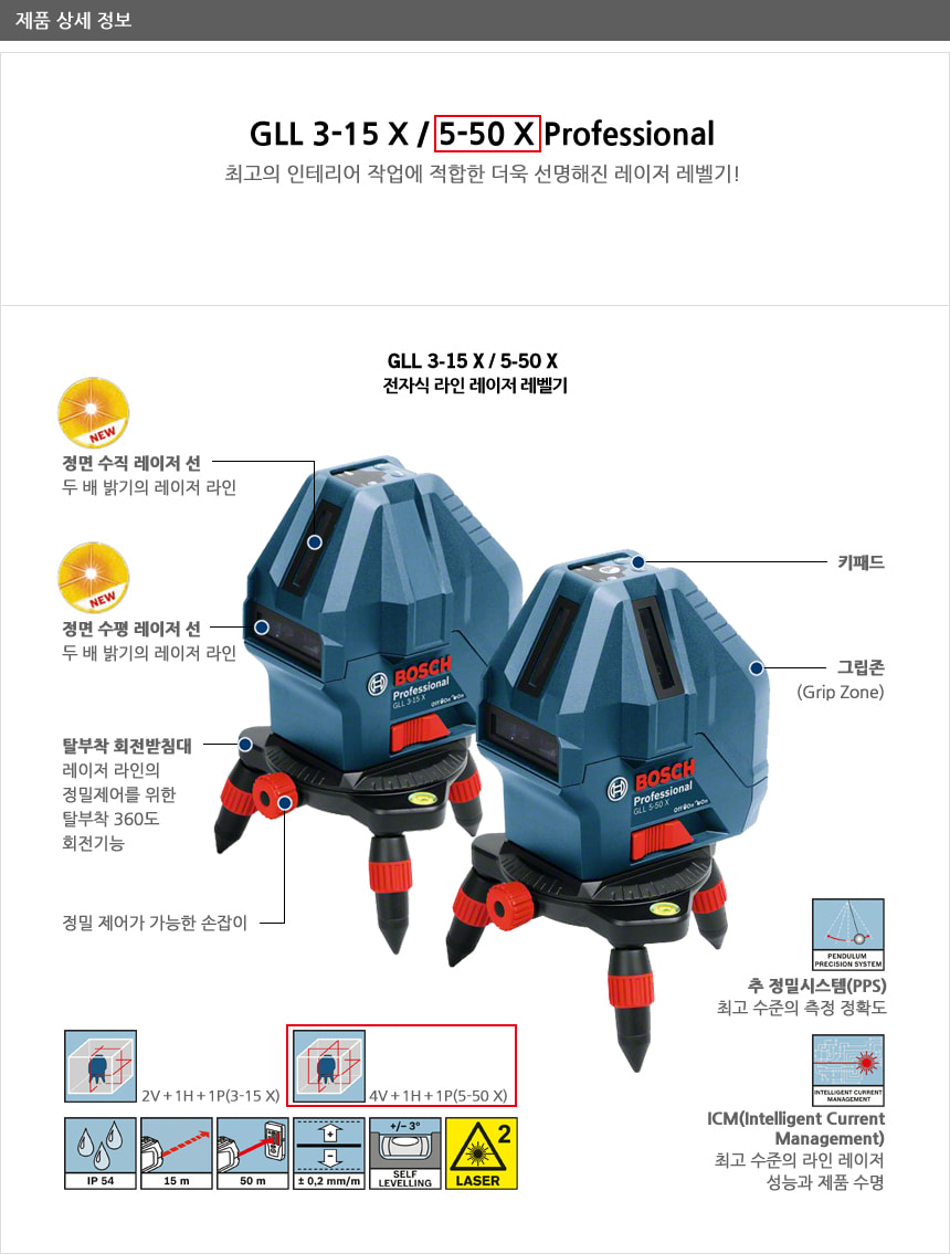 보쉬 멀티 라인 레이저 레벨기 GLL5-50X 수평기 수평계 수직 수평 측정 0601063N80