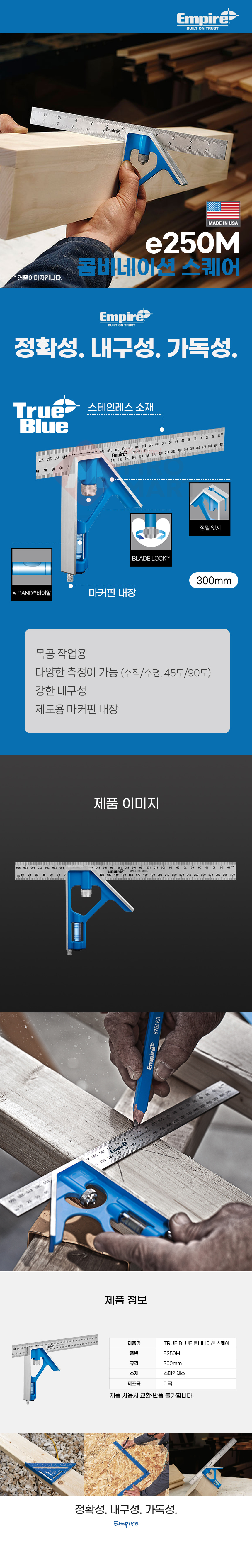엠파이어 30CM TRUE BLUE 콤비네이션 스퀘어 E250M 목공 이동식 스퀘어 수평자 직각자 각도자 측정