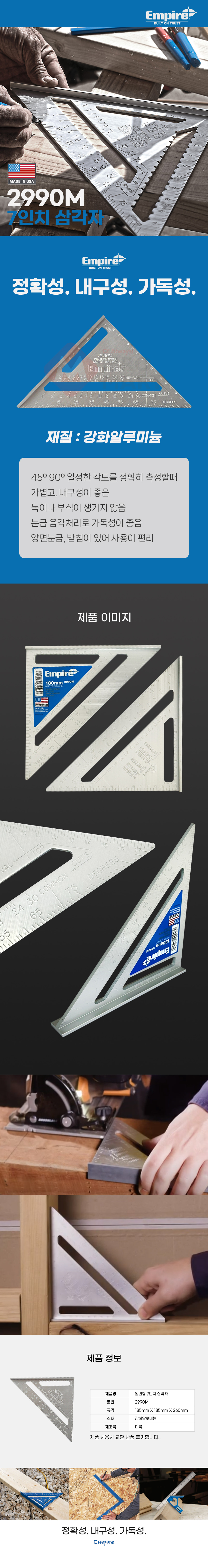 엠파이어 일반형 7인치 삼각자 2990M 스퀘어 연귀자 직각자 수평자 목공자 스틸자 측정