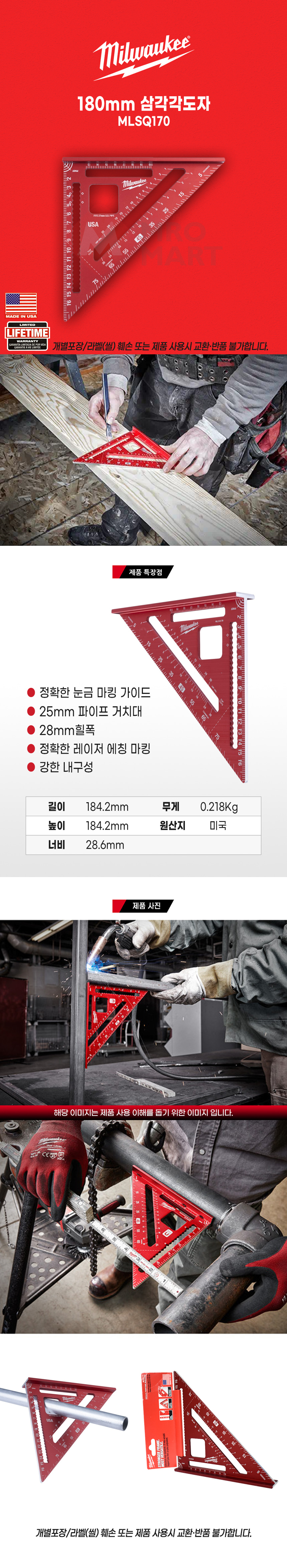 밀워키 MLSQ170 삼각 각도자 180mm 목공 눈금 제도 스퀘어 삼각자