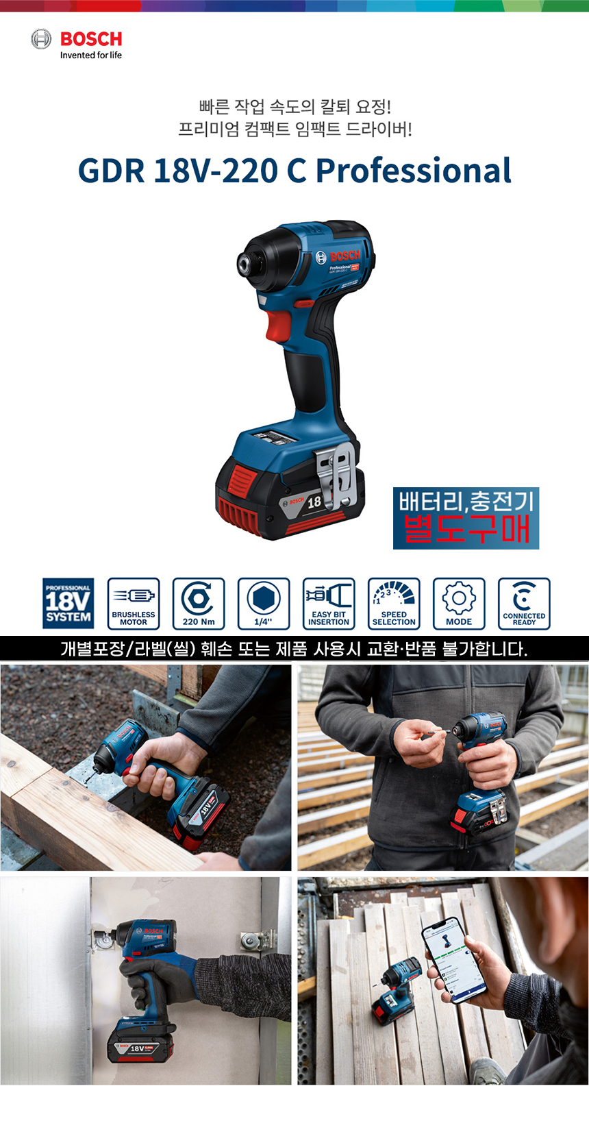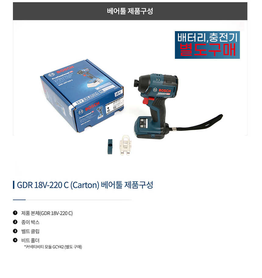 보쉬 GDR 18V-220 C 충전 임팩트 드라이버 렌치 베어툴 06019L60B2