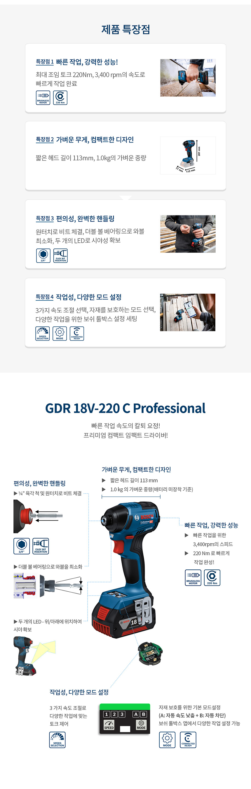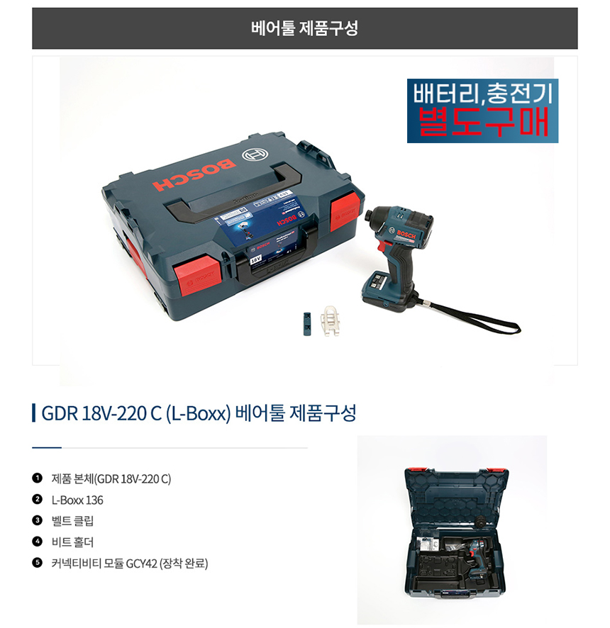 보쉬 GDR 18V-220 C 충전 임팩트 드라이버 렌치 베어툴 06019L60B0 케이스 포함