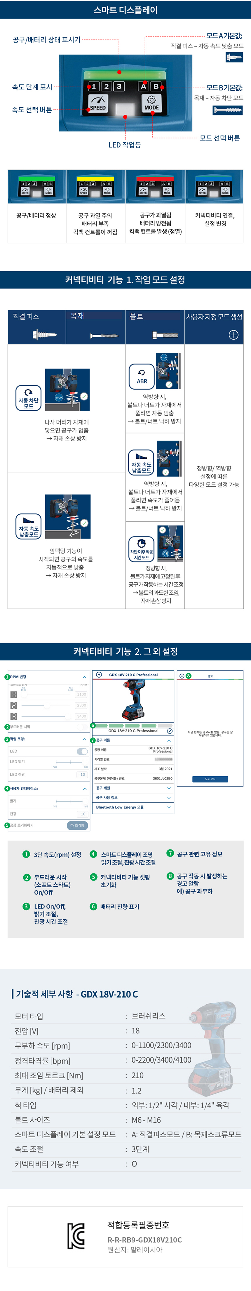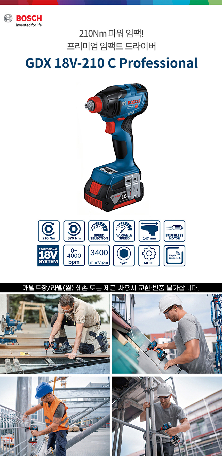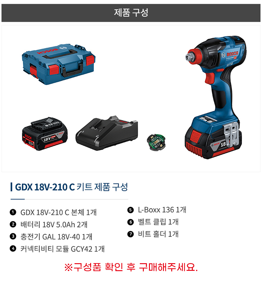 보쉬 GDX 18V-210 C 충전 임팩트 드라이버 렌치 06019J02B1 5.0AhX2 배터리 세트