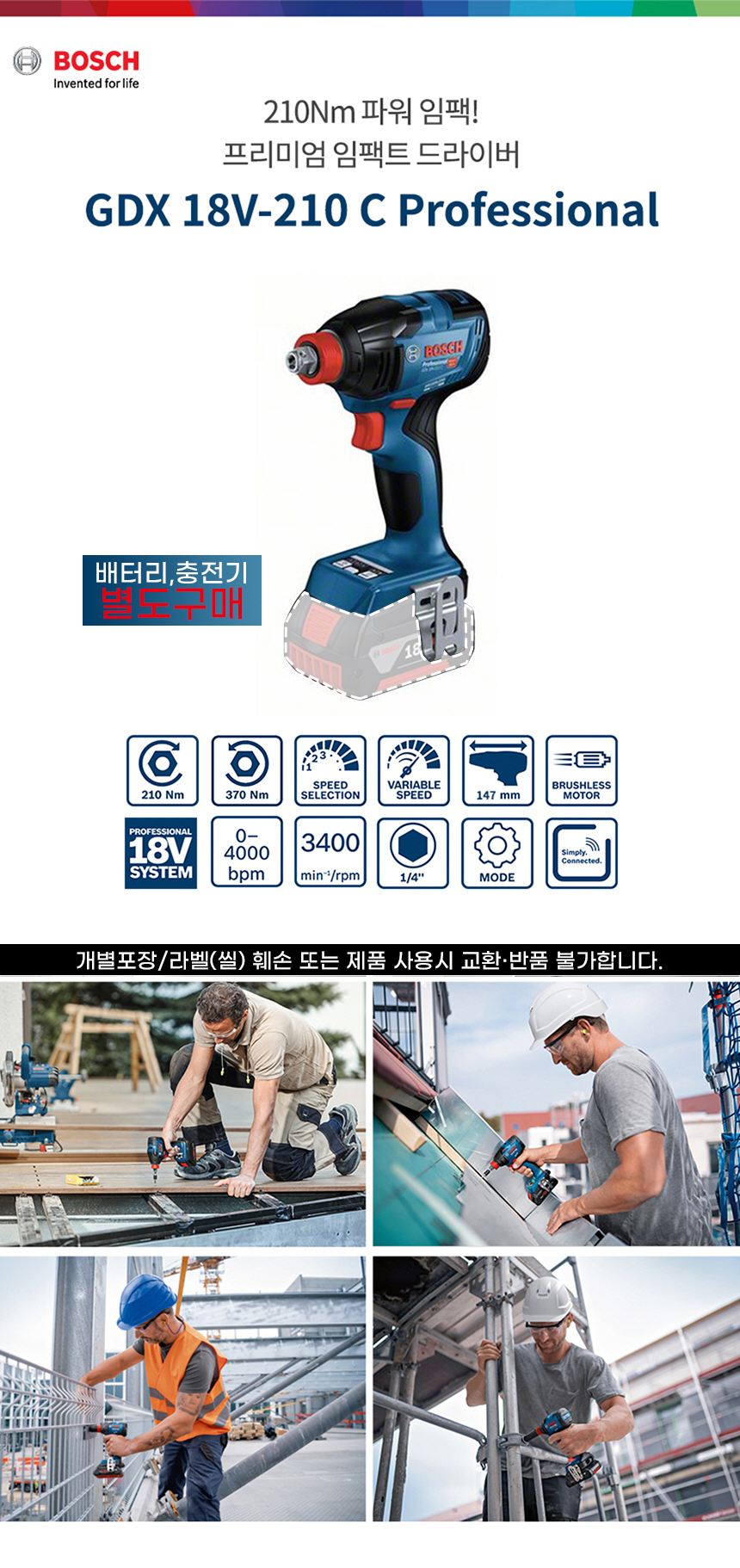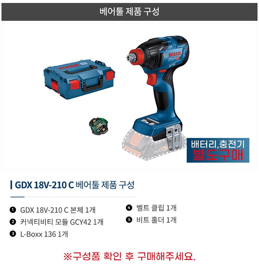 보쉬 GDX 18V-210 C 충전 임팩트 드라이버 렌치 베어툴 06019J02B0 케이스 포함