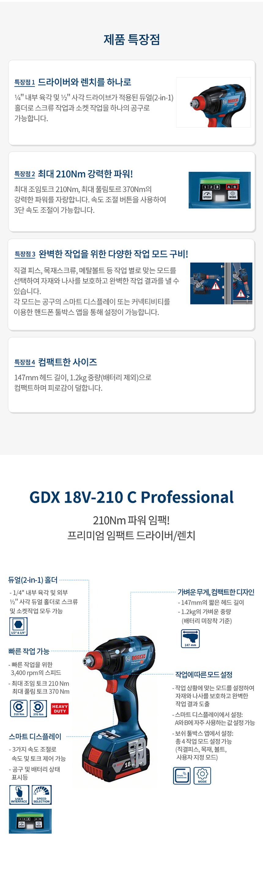보쉬 GDX 18V-210 C 충전 임팩트 드라이버 렌치 베어툴 06019J02B2