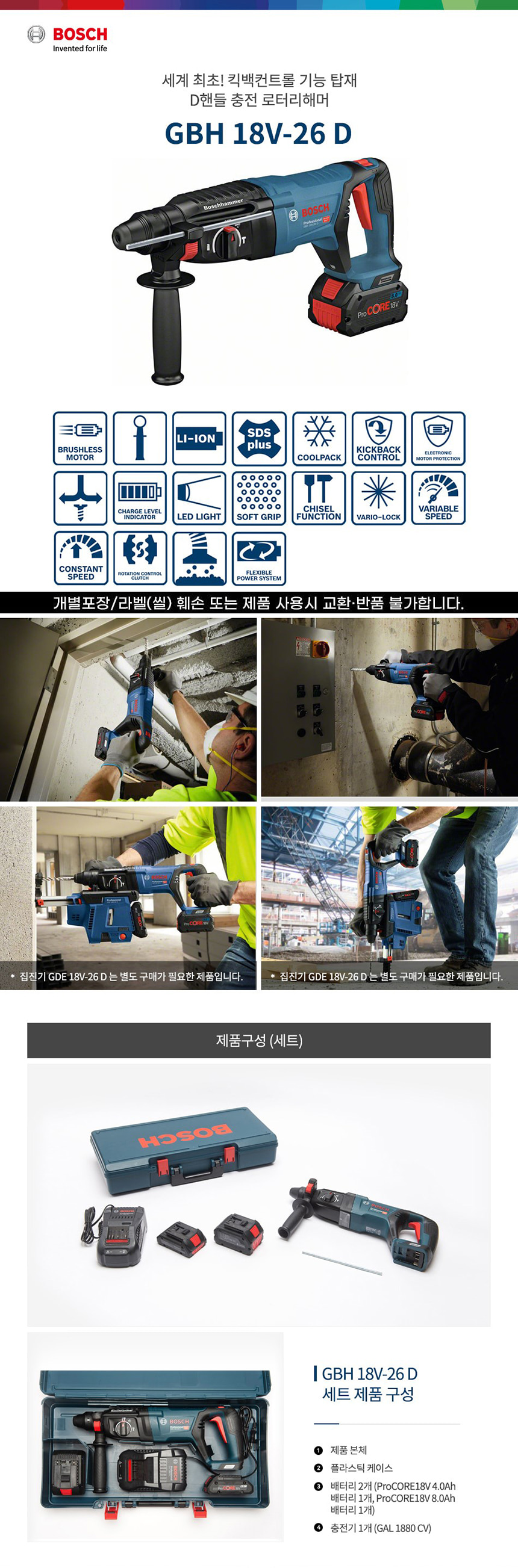 보쉬 GBH 18V-26 D SDS plus 충전 해머 드릴 06119160B1 배터리 세트