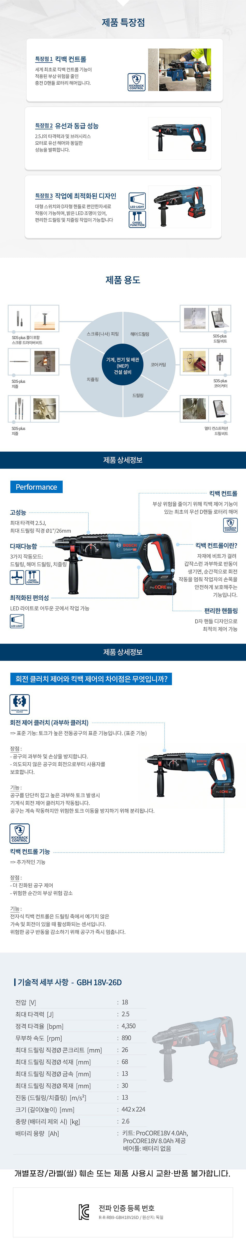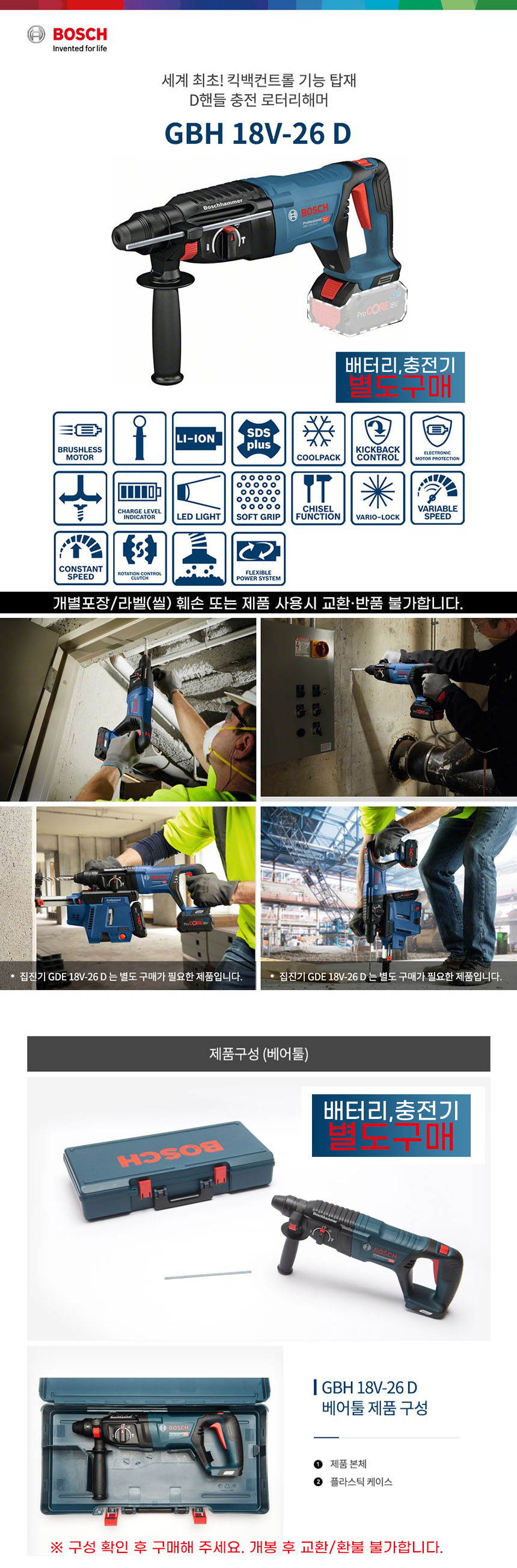 보쉬 GBH 18V-26 D SDS plus 충전 해머 드릴 베어툴 06119160B0