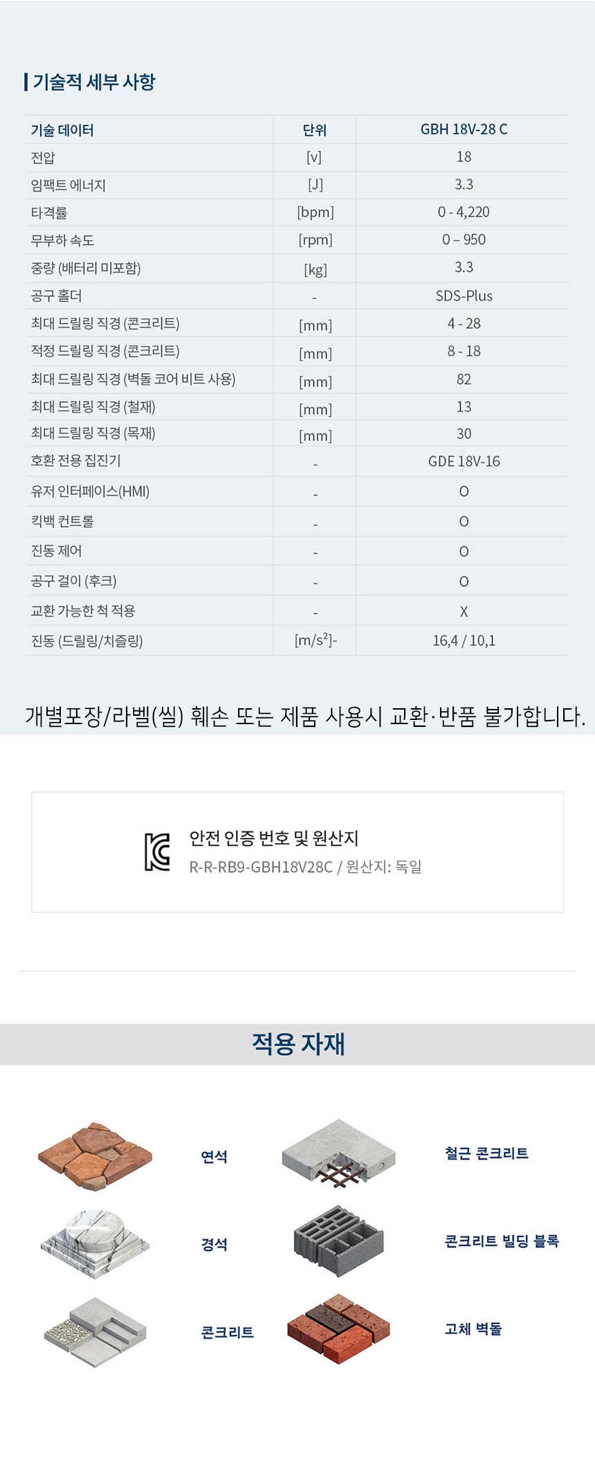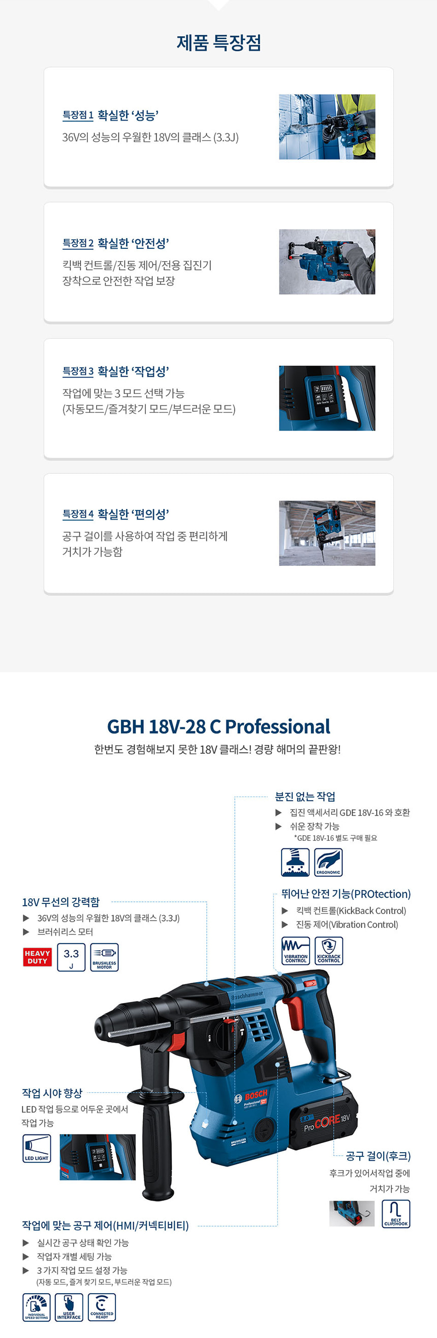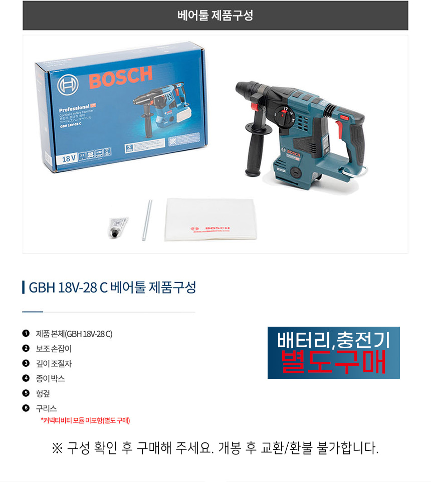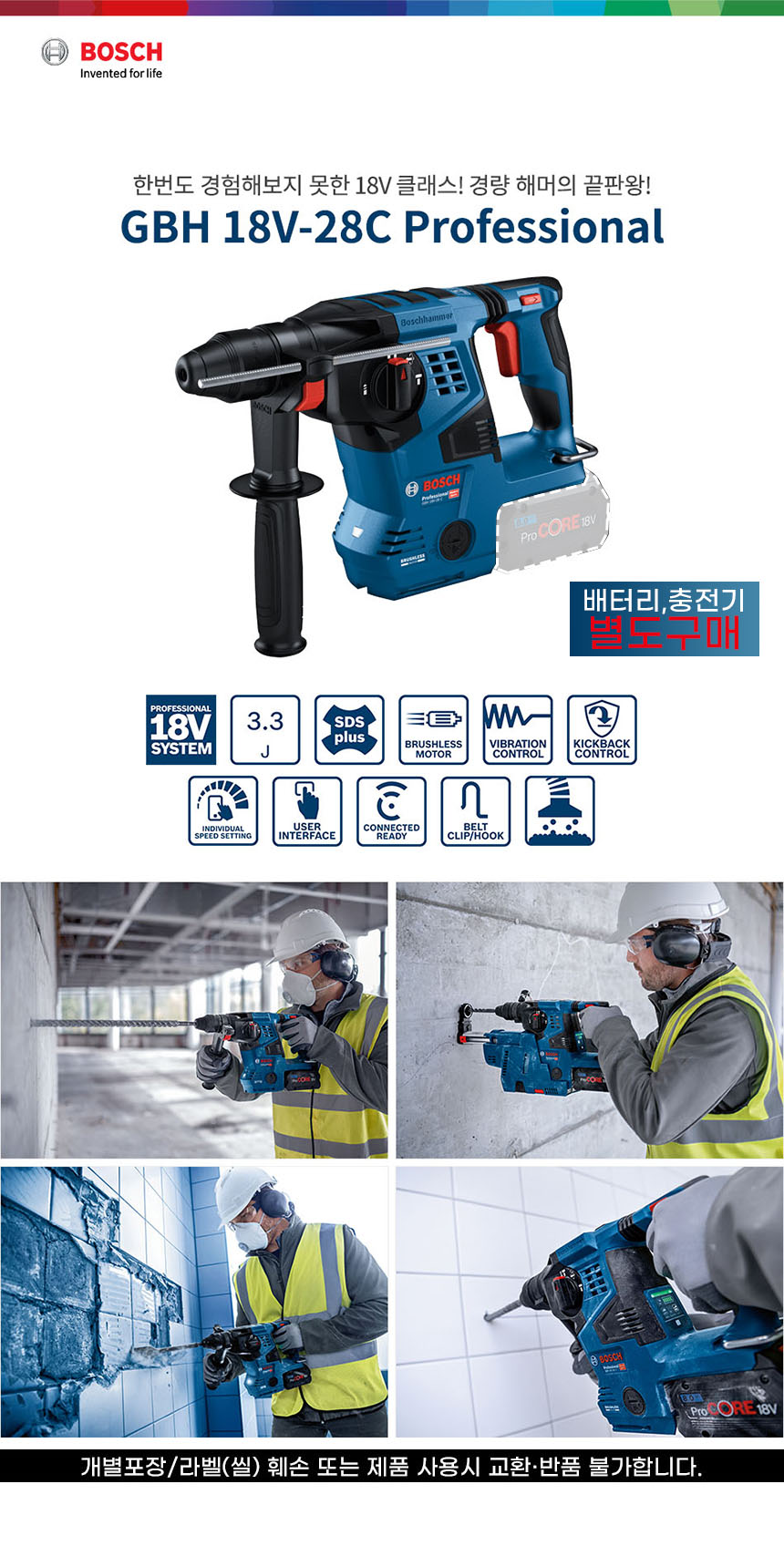 보쉬 GBH 18V-28 C SDS plus 충전 해머 드릴 베어툴 06119200B0