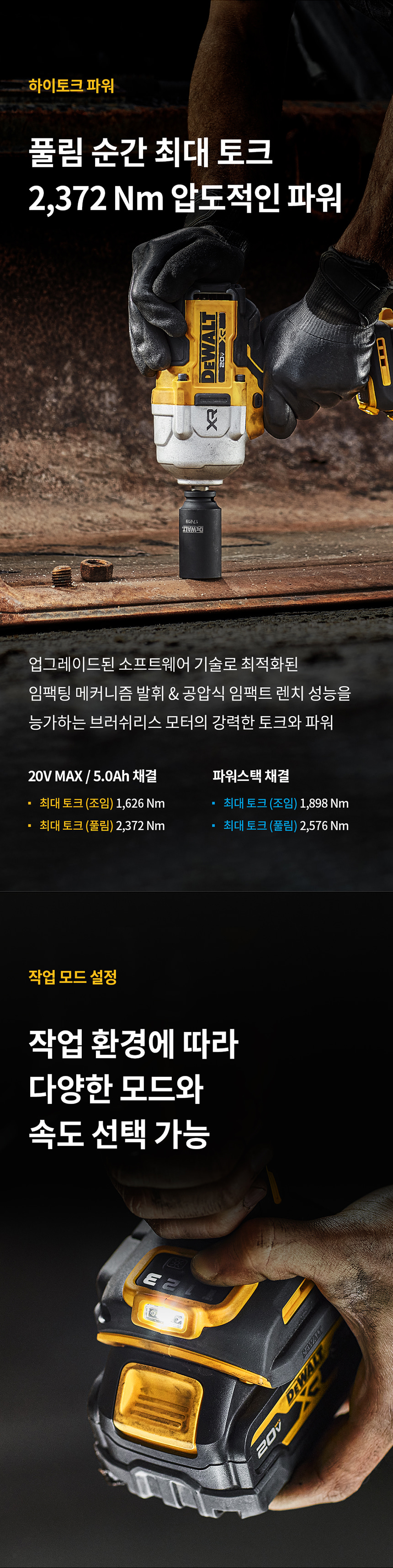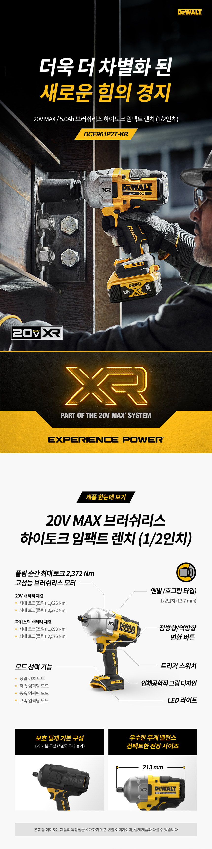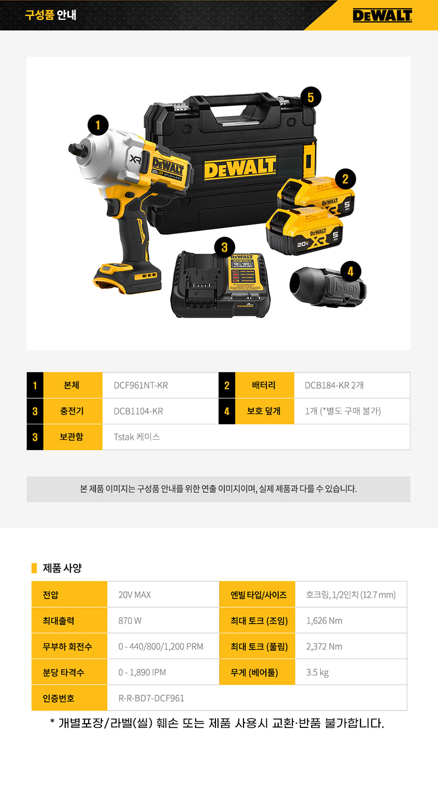 디월트 20V MAX 5.0Ah 1/2인치 충전 브러쉬리스 하이토크 임팩트 렌치 DCF961P2T 배터리 세트