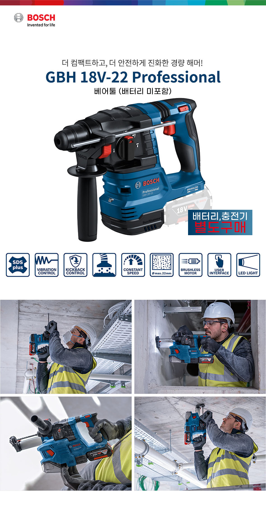 보쉬 GBH 18V-22 SDS plus 충전 해머 드릴 베어툴 06119240B0